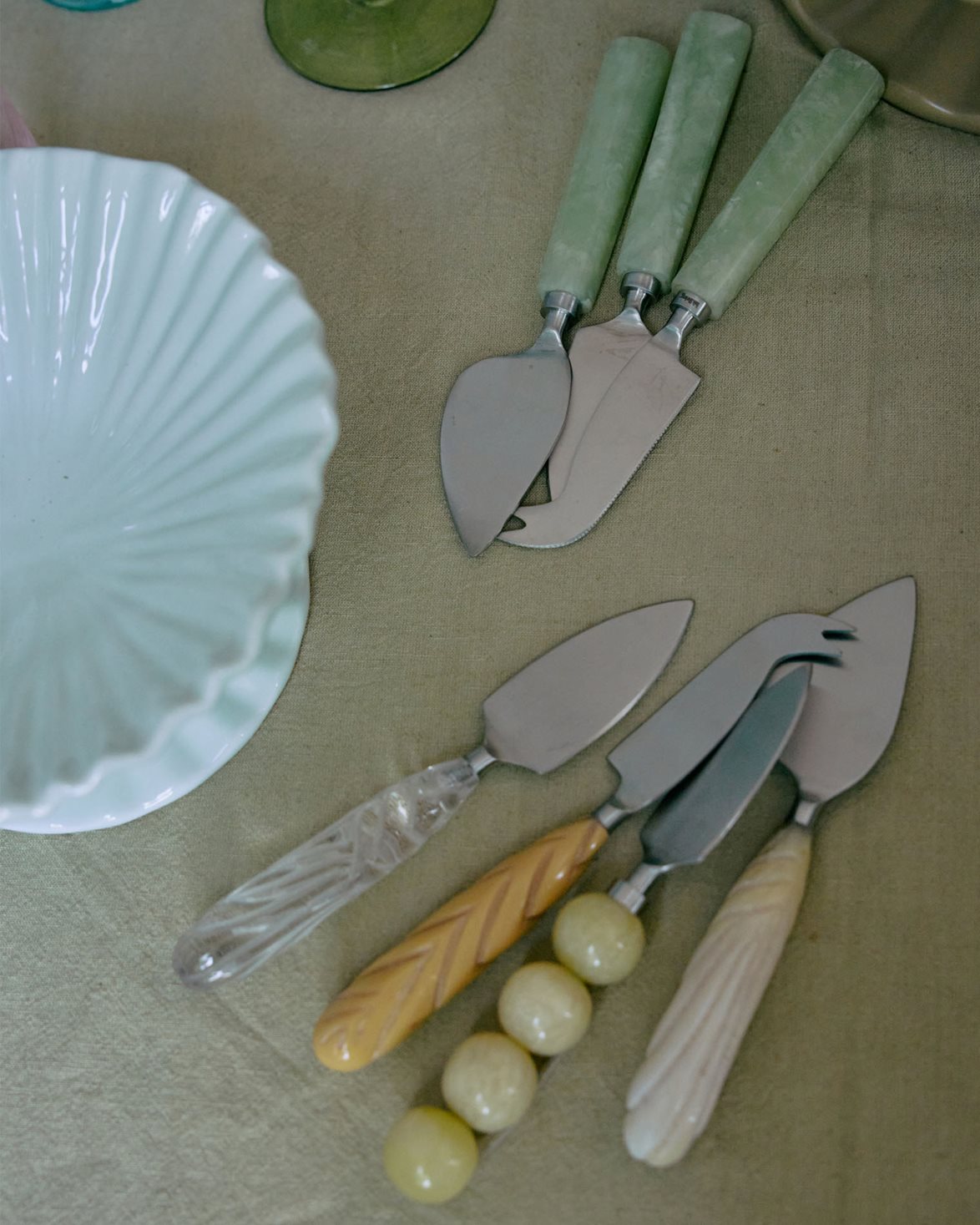 Cheese knives from HK Living. Cheese Knives Set of 3 features a playful design with colorful handles. The knives are sold in a set of three.