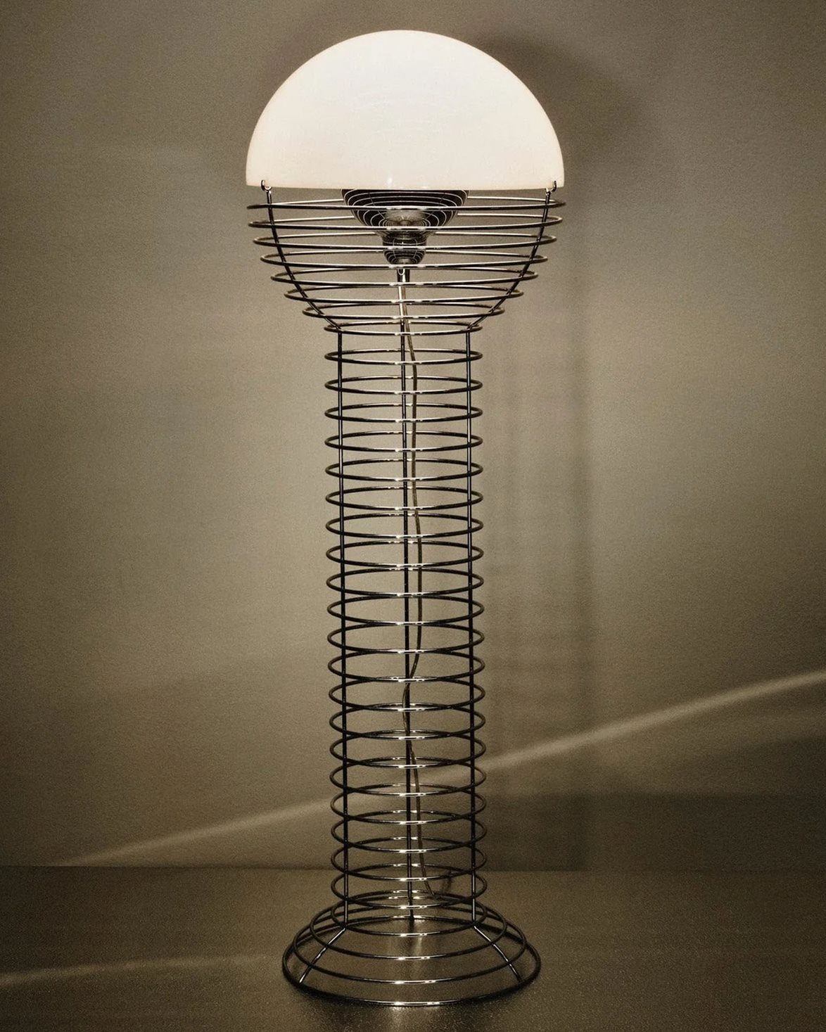 Floorlamp from VERPAN. Wire Floor Lamp is a modern interpretation of Verner Panton’s iconic 1972 design. The lamp features an open wire frame and a dome-shaped shade.