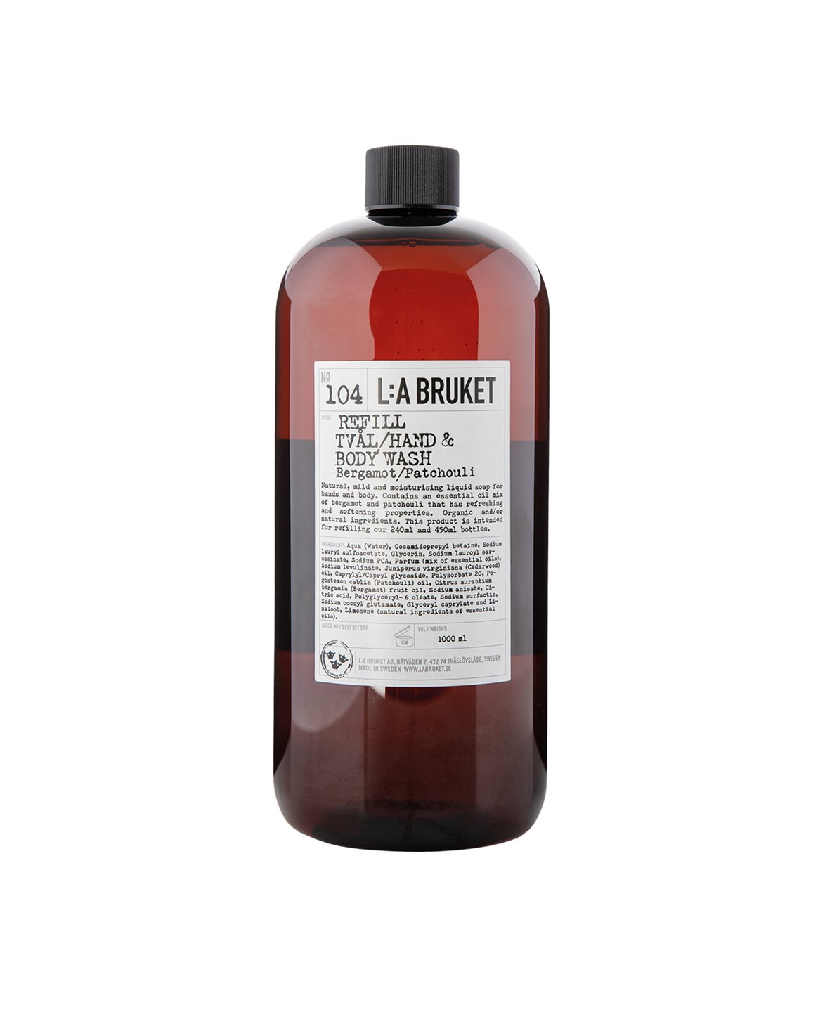 Soap from L:a Bruket. 104 Refill Hand & Body Wash is a naturally moisturizing liquid soap that is gentle on the skin, with a relaxing woody and citrusy scent.