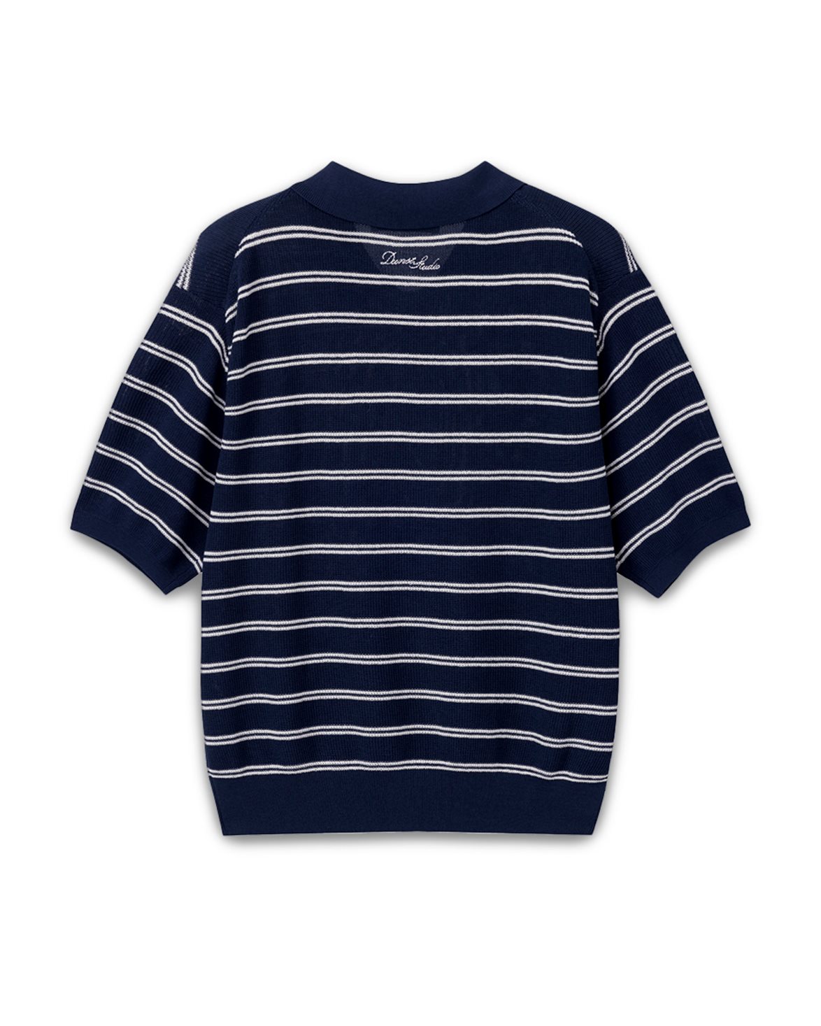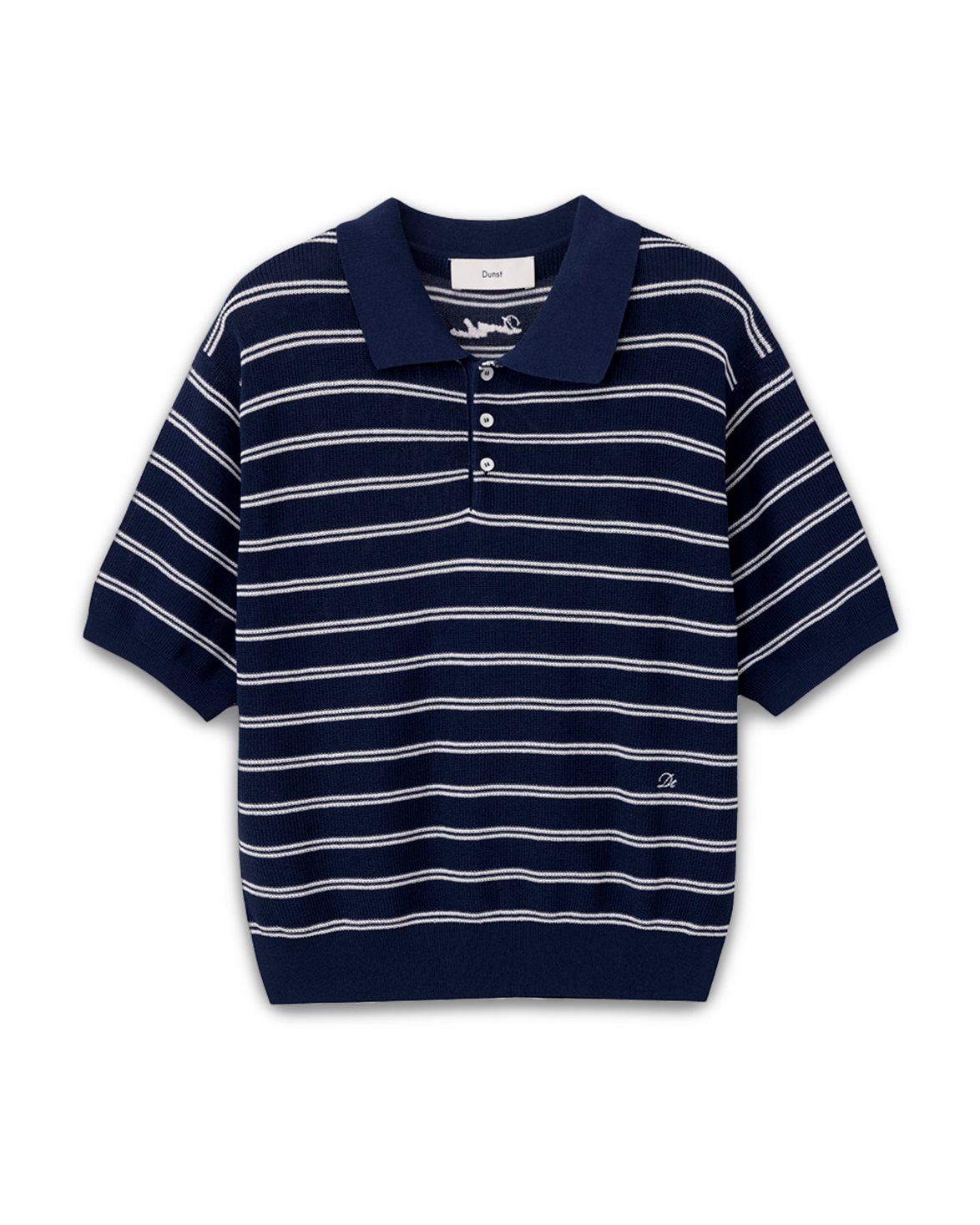 Dunst Striped Shortsleeve Polo Knit NavyDunst Striped Shortsleeve Polo Knit Navy