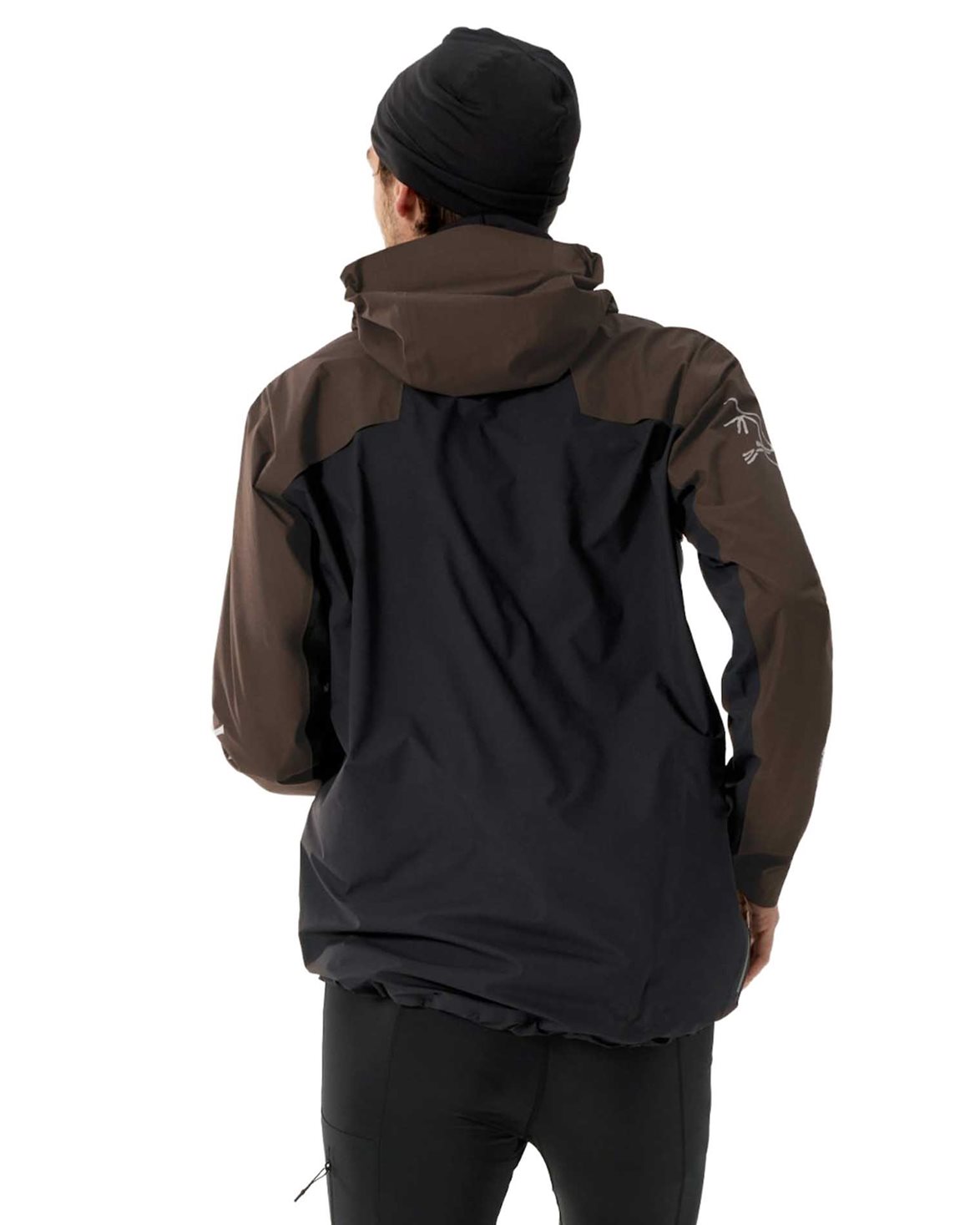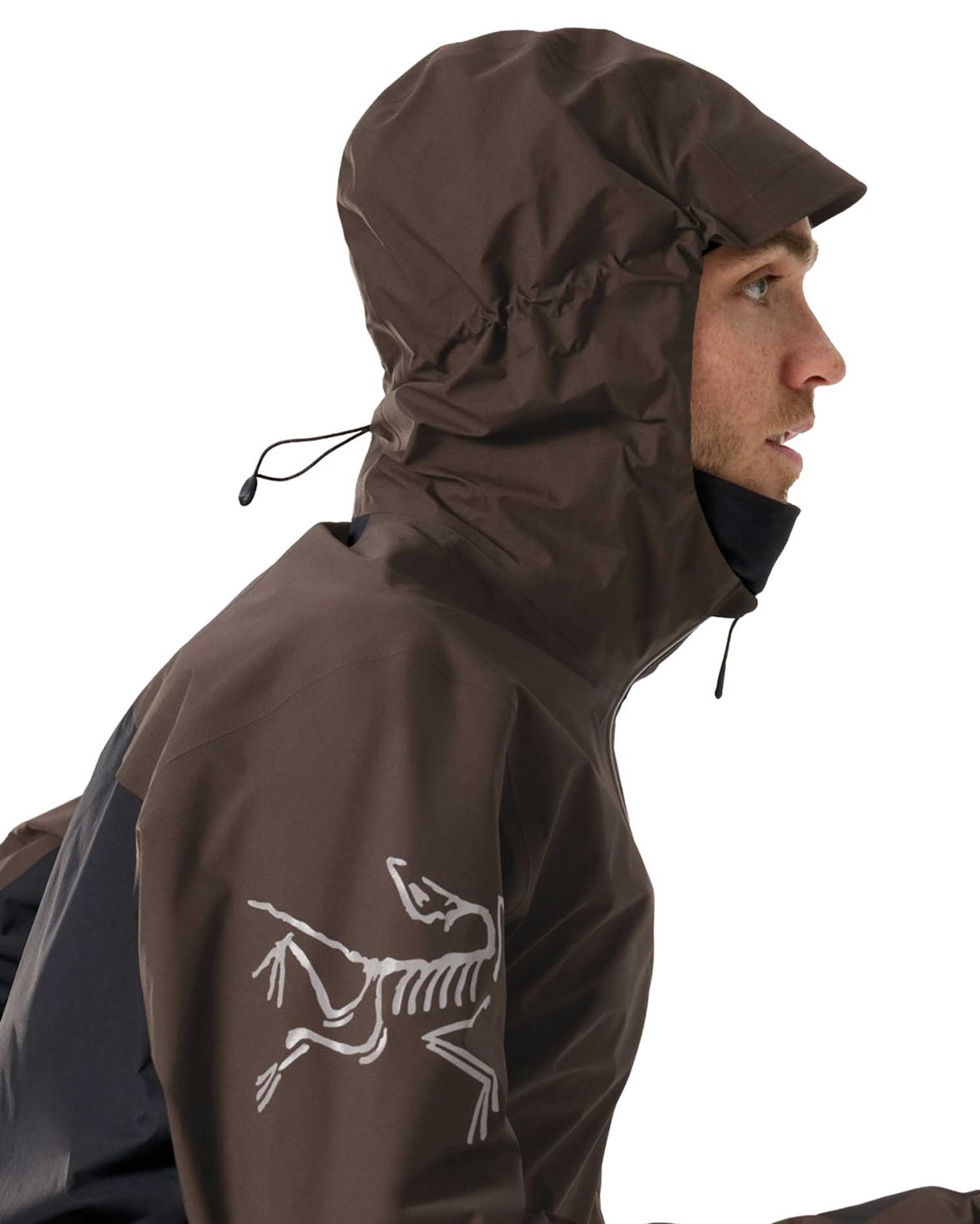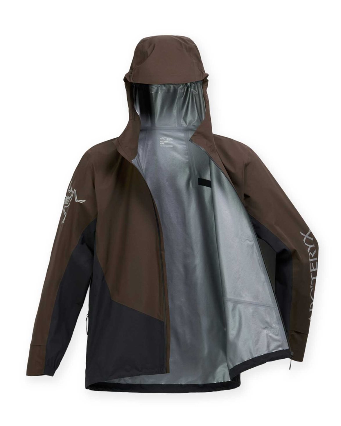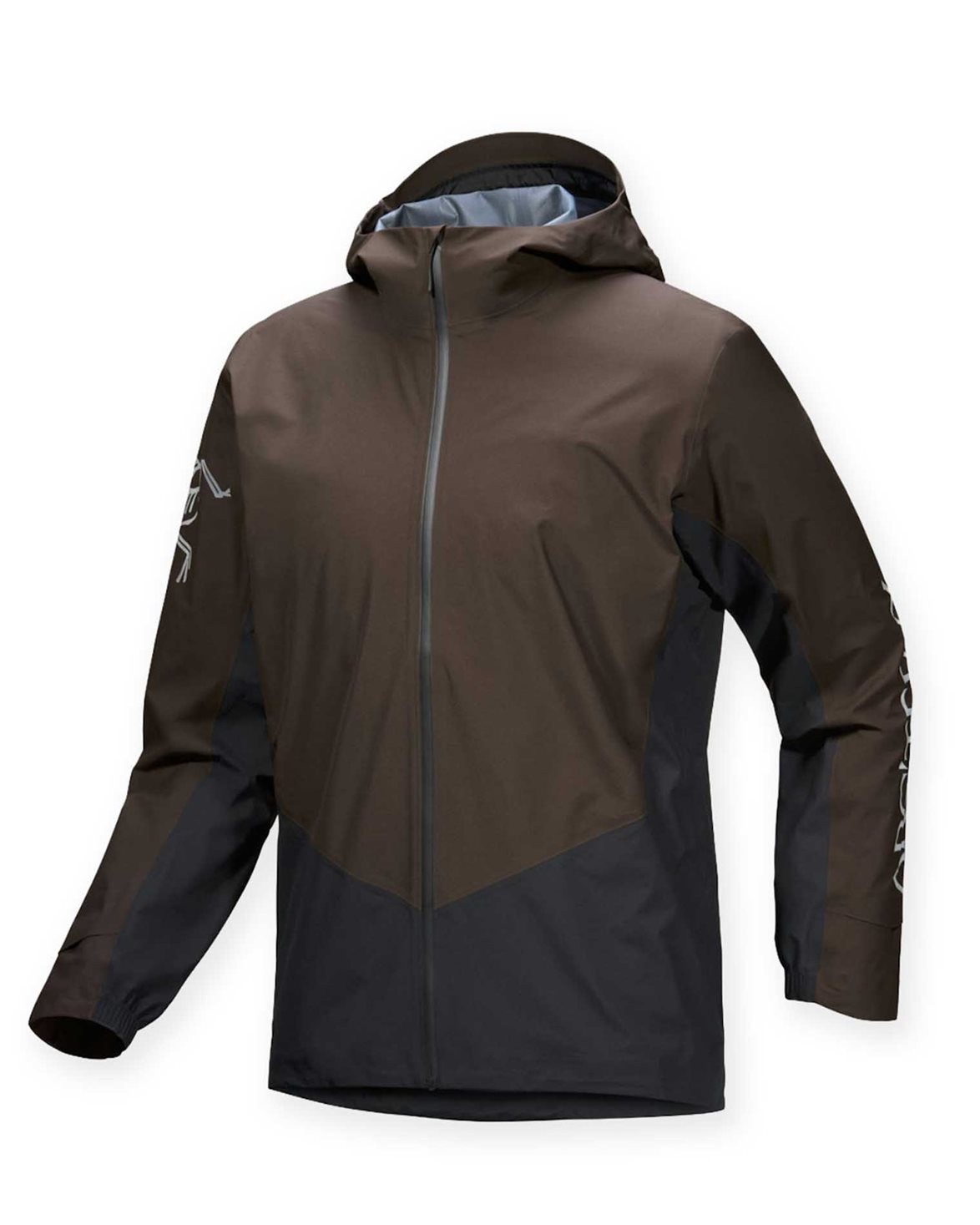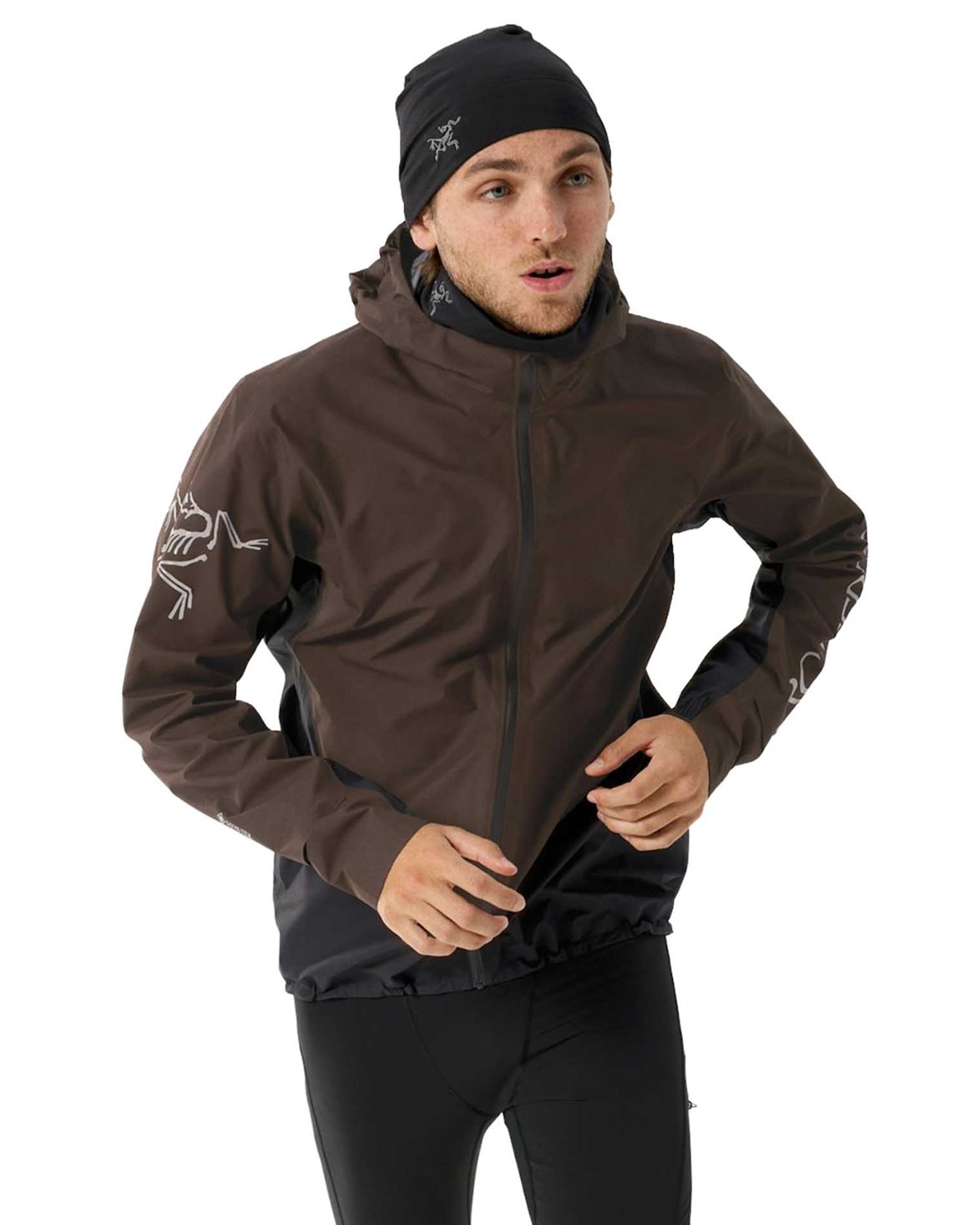 Jacket from Arc'teryx. Norvan Jacket M is an ultralight and fully waterproof running jacket made from PFAS-free 15D GORE-TEX ePE with a recycled face fabric, offering windproof protection and high breathability. It features underarm and back yoke vents for ventilation, laminated cuffs with an integrated watch window, an adjustable low profile hood and elasticated cuffs and hem. The jacket packs into its own pocket and includes a zipped hip pocket, reflective details and an integrated RECCO reflector. Ergonomic seam construction and articulated patterning enhance mobility, while the GORE C-KNIT™ backer is soft, breathable and made with recycled content.
