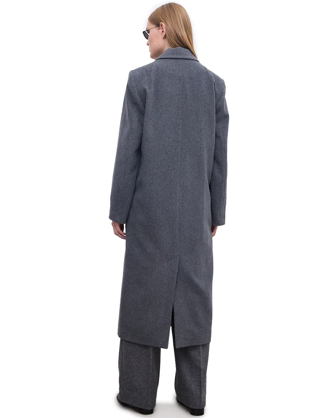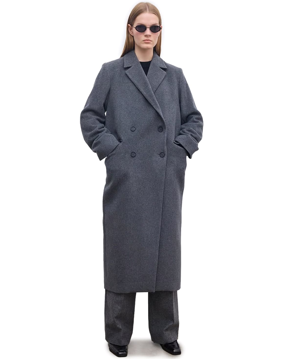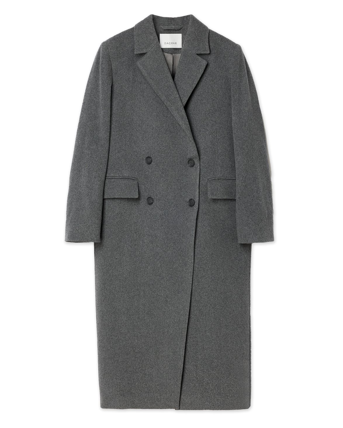 Double-breasted coat from House Of Dagmar. Double Breasted Coat is made from a luxurious wool blend and has an oversize fit with a straight silhouette. The coat features two side pockets, a back hem slit, and a front button closure.