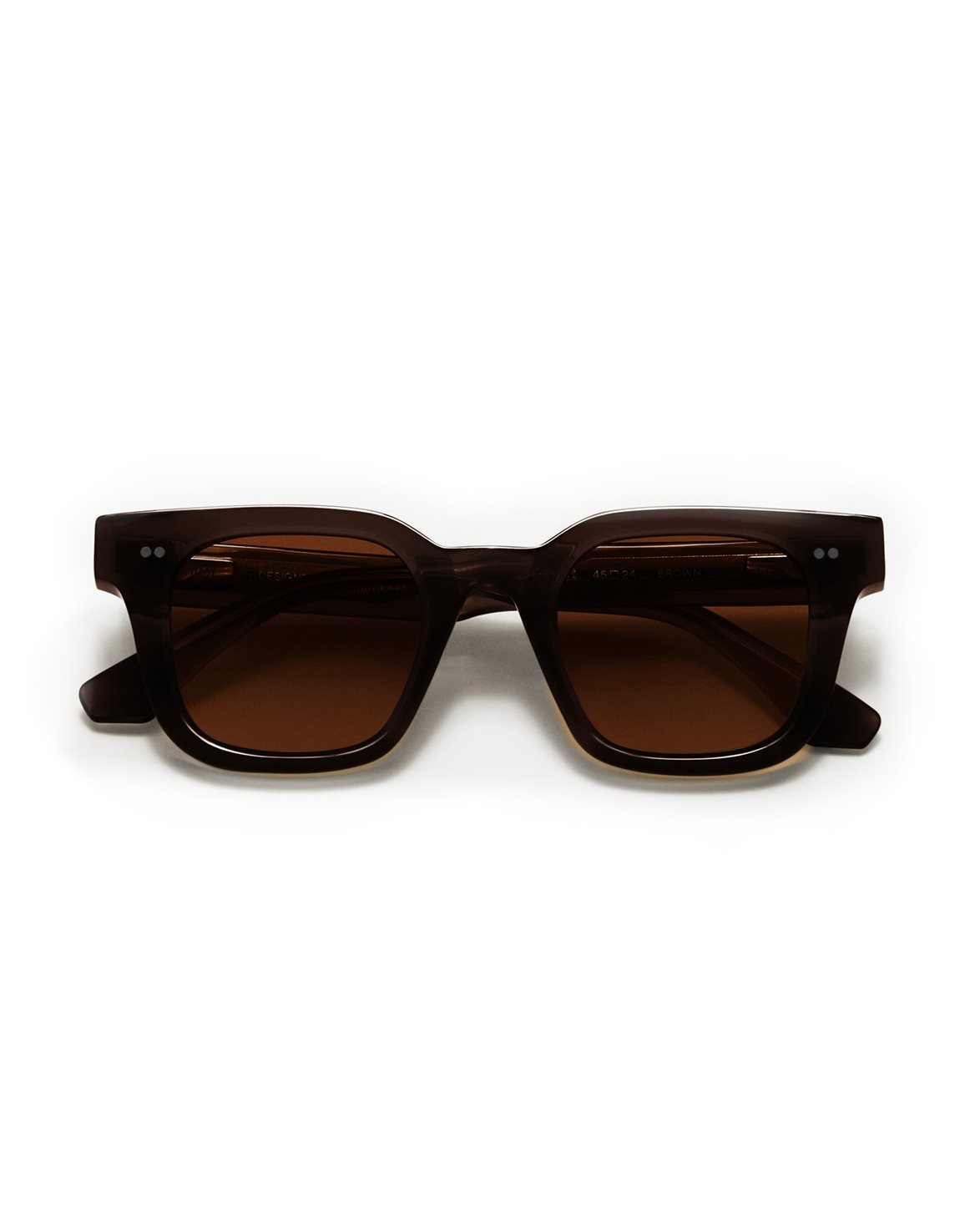 Sunglasses from CHIMI. 04 Large has a timeless design with a square silhouette accentuated by a sculptural temple construction. They are equipped with UV-protective CR39 lenses, silver-toned rivet hinges, and finished with a beveled brow for an elegant profile. The sunglasses are crafted from Italian premium Acetate Renew™ and enhanced with a customized CHIMI metal core.