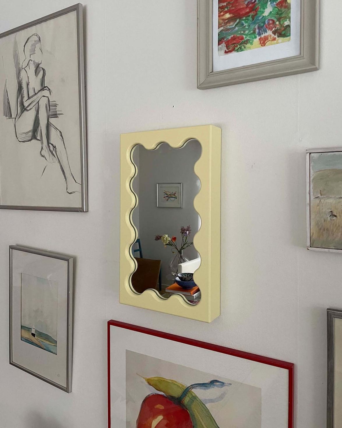 Mirror from Gustaf Westman. Curvy Mirror Micro is handcrafted from wood and features a curved frame with a semi-matte finish. The mirror can be leaned against the wall or mounted on it.