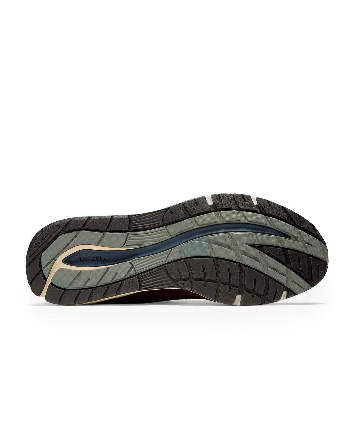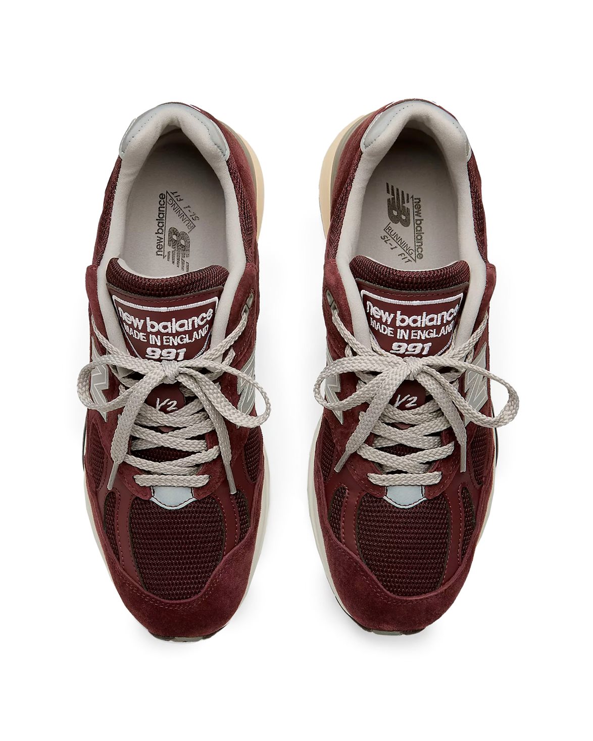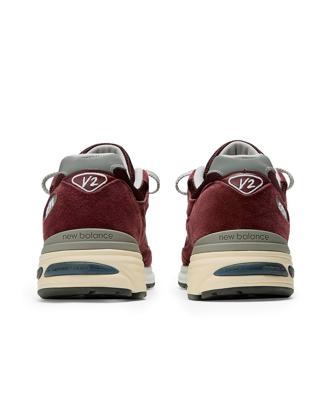 Sneakers from New Balance. The style Made In UK 991 V2 is an updated version of the classic 991, designed with a sleek upper made of leather suede, mesh, and synthetic materials. The shoe features a FuelCell cushioning, along with ABZORB SBS pods and ENCAP for enhanced comfort.