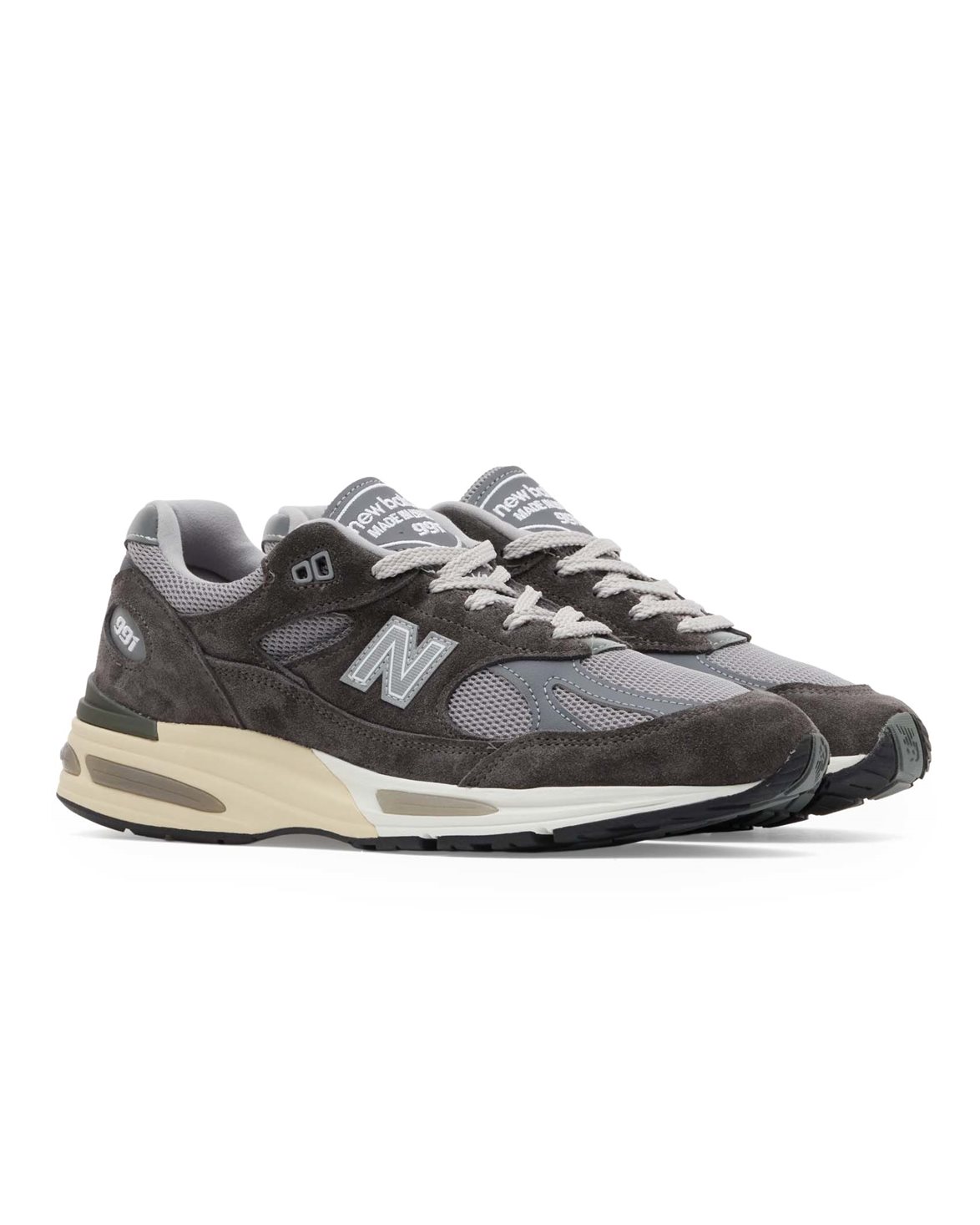 Sneakers from New Balance. The style Made In UK 991 V2 is an updated version of the classic 991, designed with a sleek upper made of suede, leather, mesh, and synthetic materials. The shoe features a FuelCell cushioning, along with ABZORB SBS pods and ENCAP for enhanced comfort.