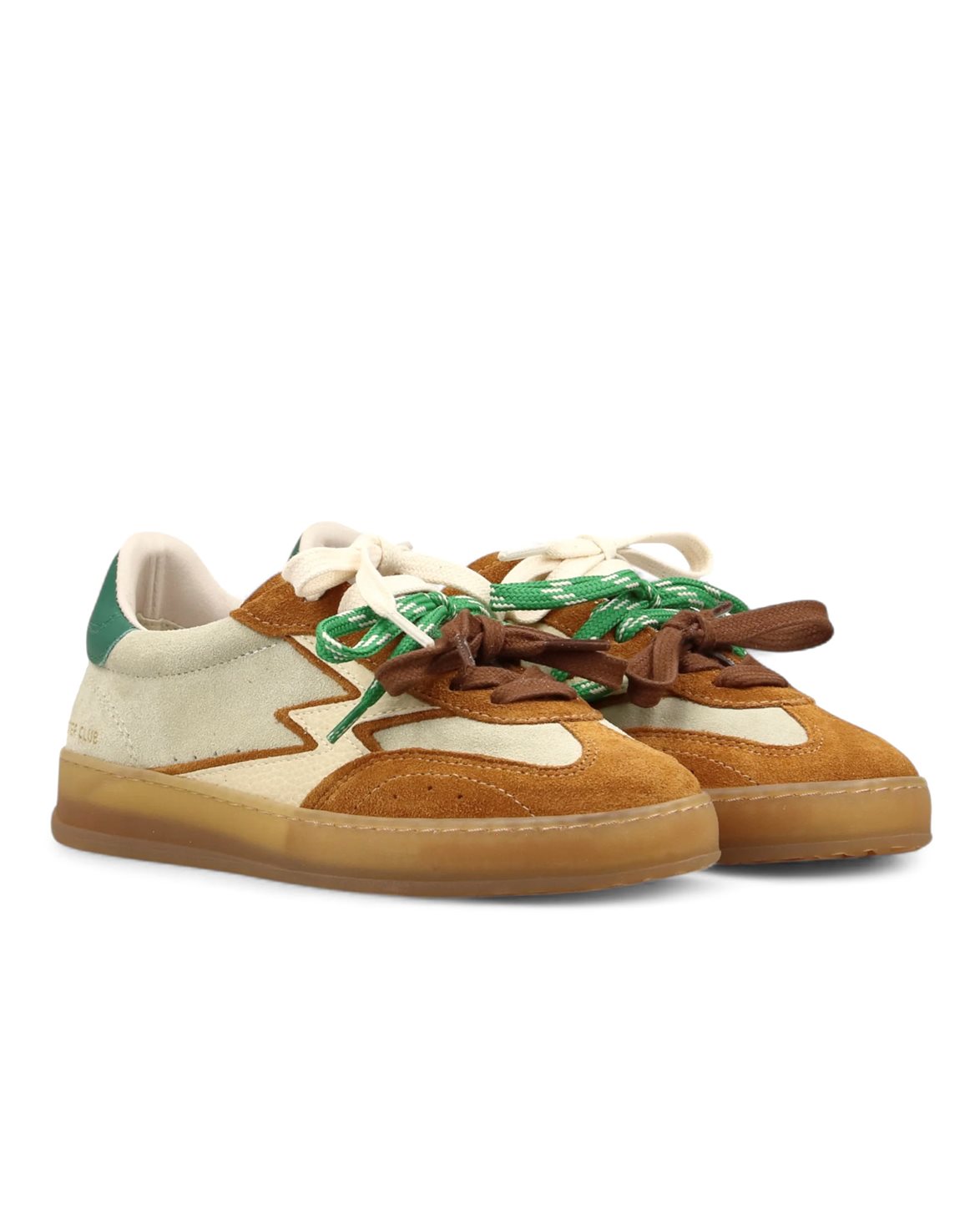 Sneakers from Moa Concept. Club Sneakers W are made in Italy from high-quality suede with a durable rubber sole. The shoes feature a comfortable textile lining, a leather insole, and triple cotton laces in off-white, brown, and green.
