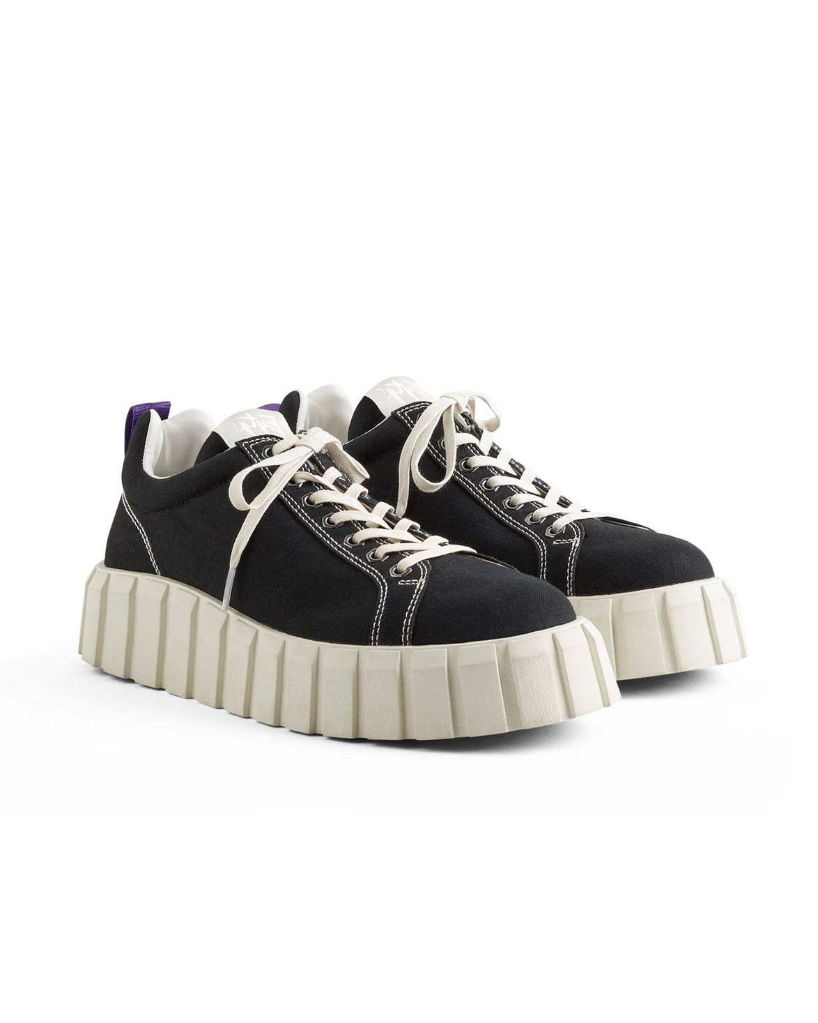 Svarta 50-talsinspirerade sneakers från Eytys. Odessa Sneakers har en chunky design med karaktäristiska gummisulor och kontrasterande vita sömmar på den svarta bomullscanvasen.