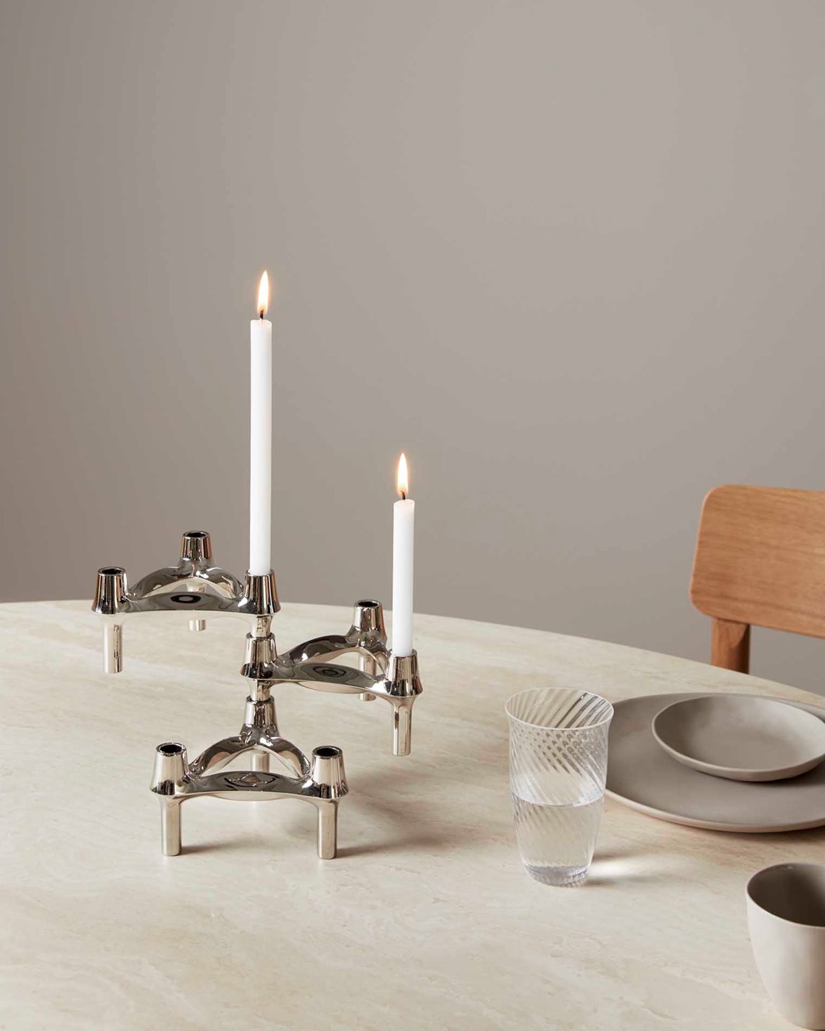 Ljushållare från STOFF. BMF Candle Holder är en reproduktion av den ursprungliga ljusstaken designad av Nagel-företaget i slutet på 1960-talet. Ljussstaken har en stapelbar design som går att sättas ihop med varandra för att skapa en unik design.