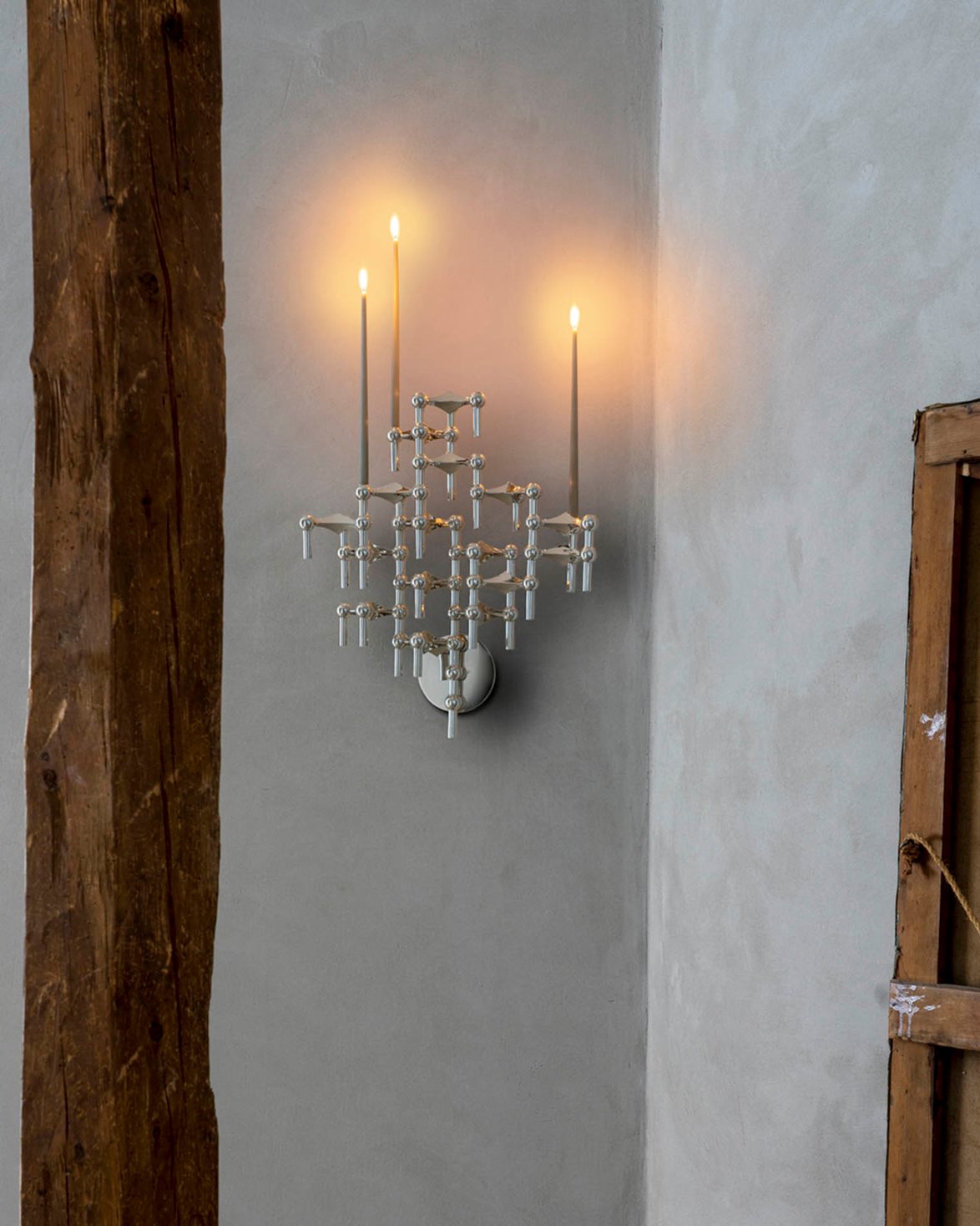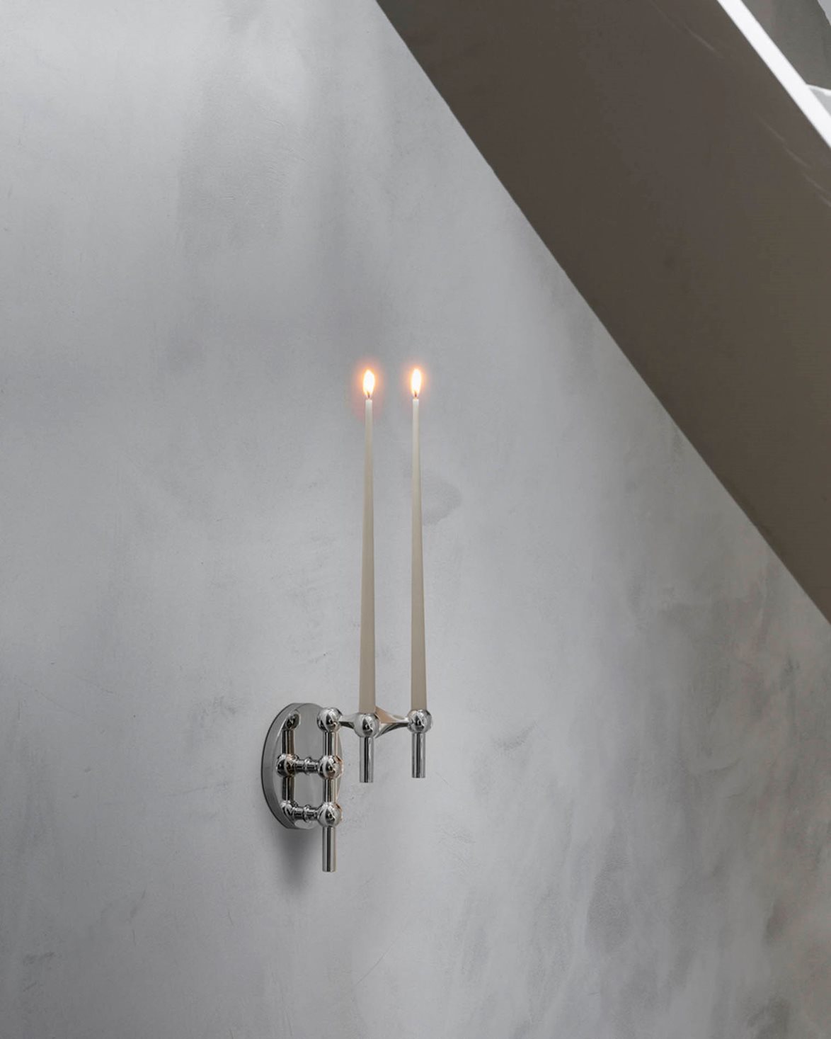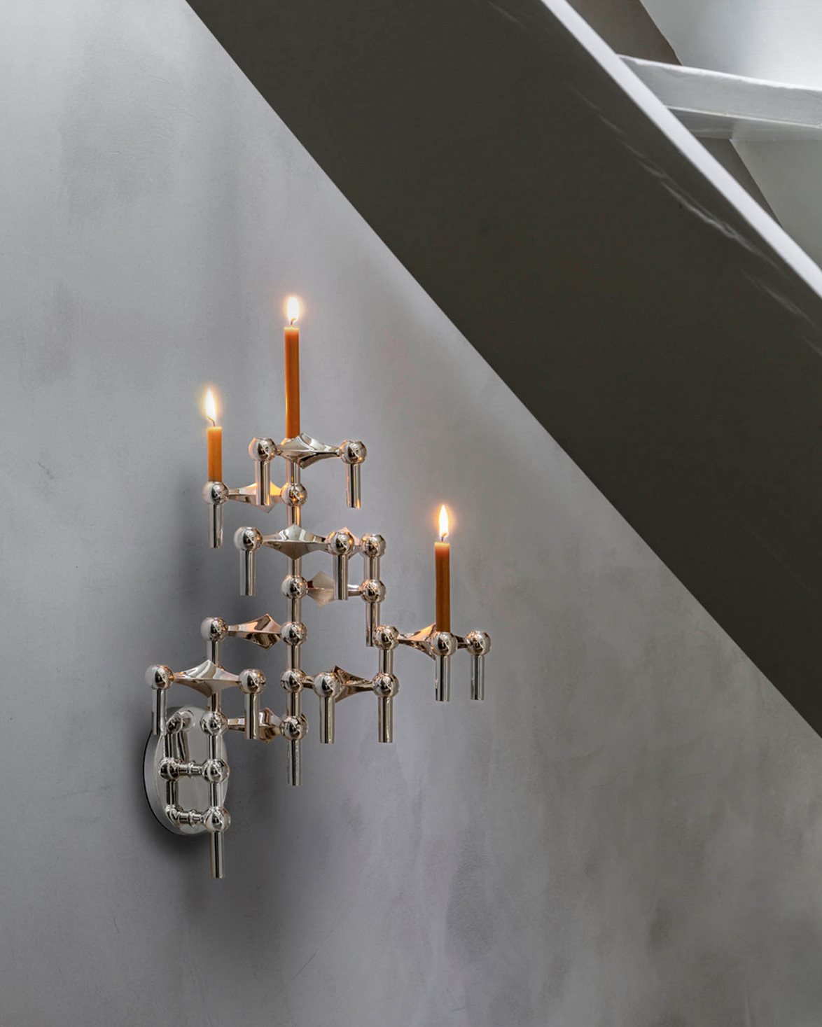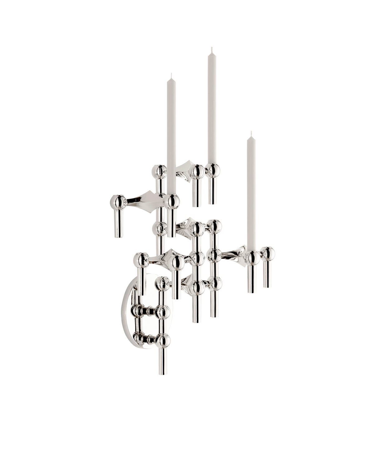 Vägghängd ljushållare från STOFF. Wall Hanger är en reproduktion av den ikoniska modulljusstaken från 1965 som designades av Werner Stoff för Hans Nagel. Varje ljusstake i serien går att kombinera och sättas ihop med varandra för att skapa en unik design.