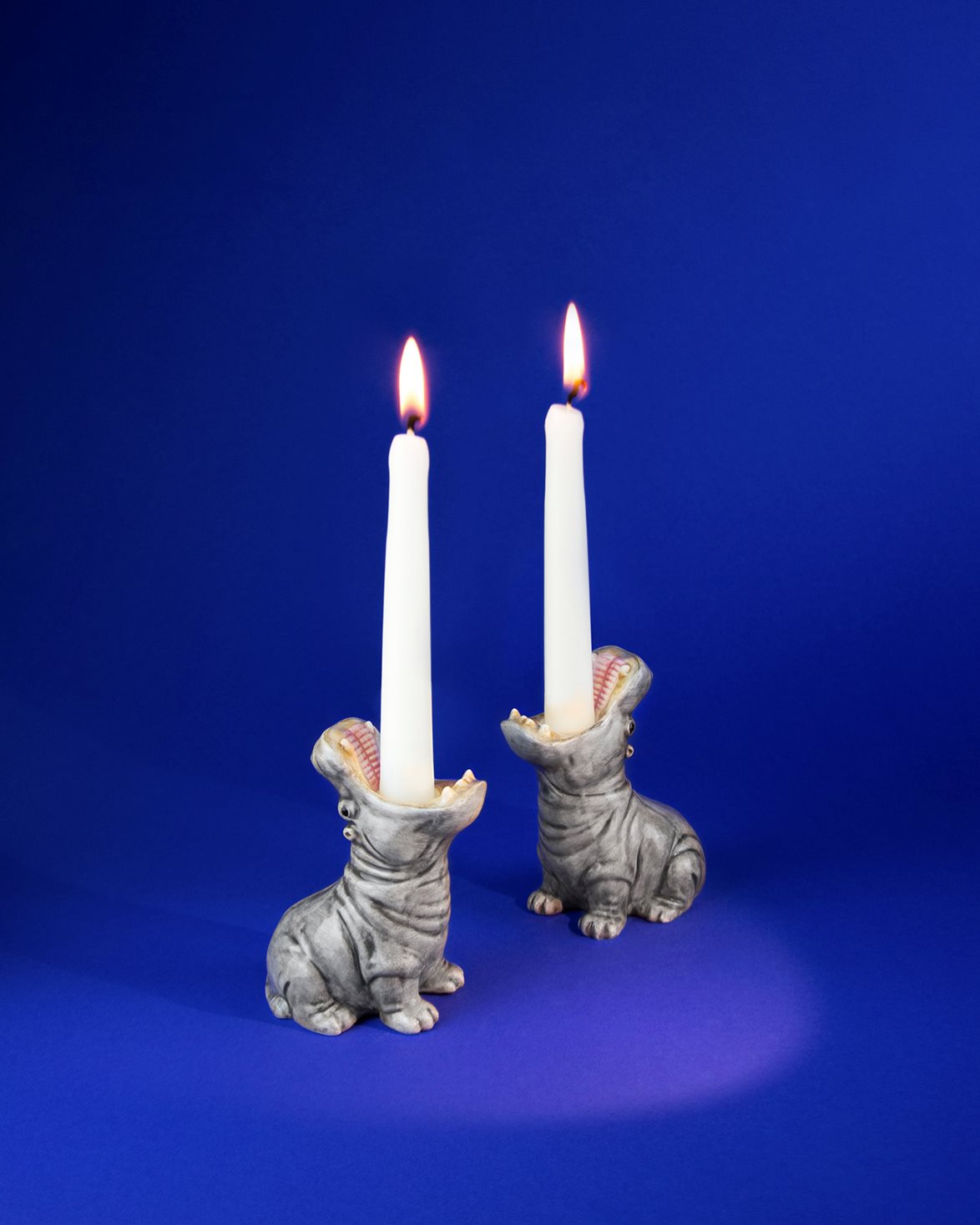 Ljusstakar från Donkey. Hungry Hippo Candle Holder 2-Pack är tillverkad av dolomit och har en lekfull design i form av två flodhästar med öppen mun. Ljushållarna säljs i 2-pack.