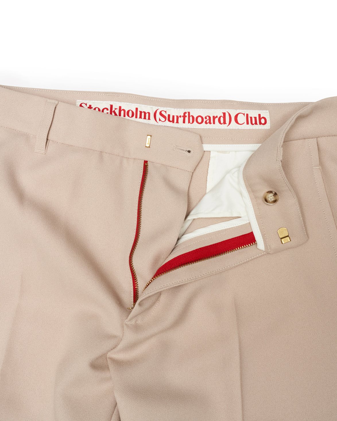 Kostymbyxor från Stockholm Surfboard Club. Sune Tailored Bootcut Trousers är designade med en tidlös silhuett och en avslappnad bootcut passform. Byxorna är försedda med sneda sidofickor med en dold dragkedja och dekorativa pressveck fram- och baktill.
