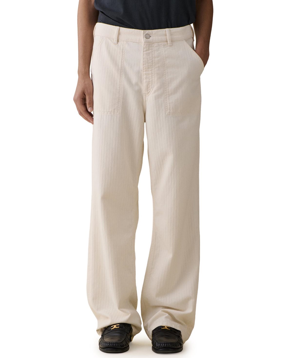 Byxor från Jeanerica. Genua Worker Chino är tillverkade av bomullsdenim i en grön tvätt och är desigande med en hög midja och raka ben. Byxorna är försedda med stora, påsydda sidofickor.