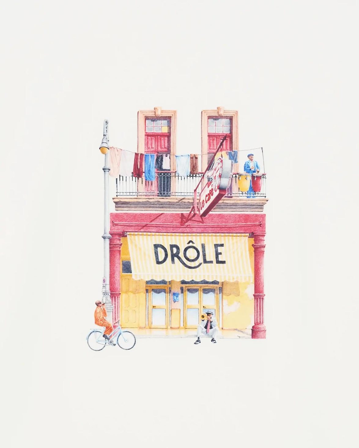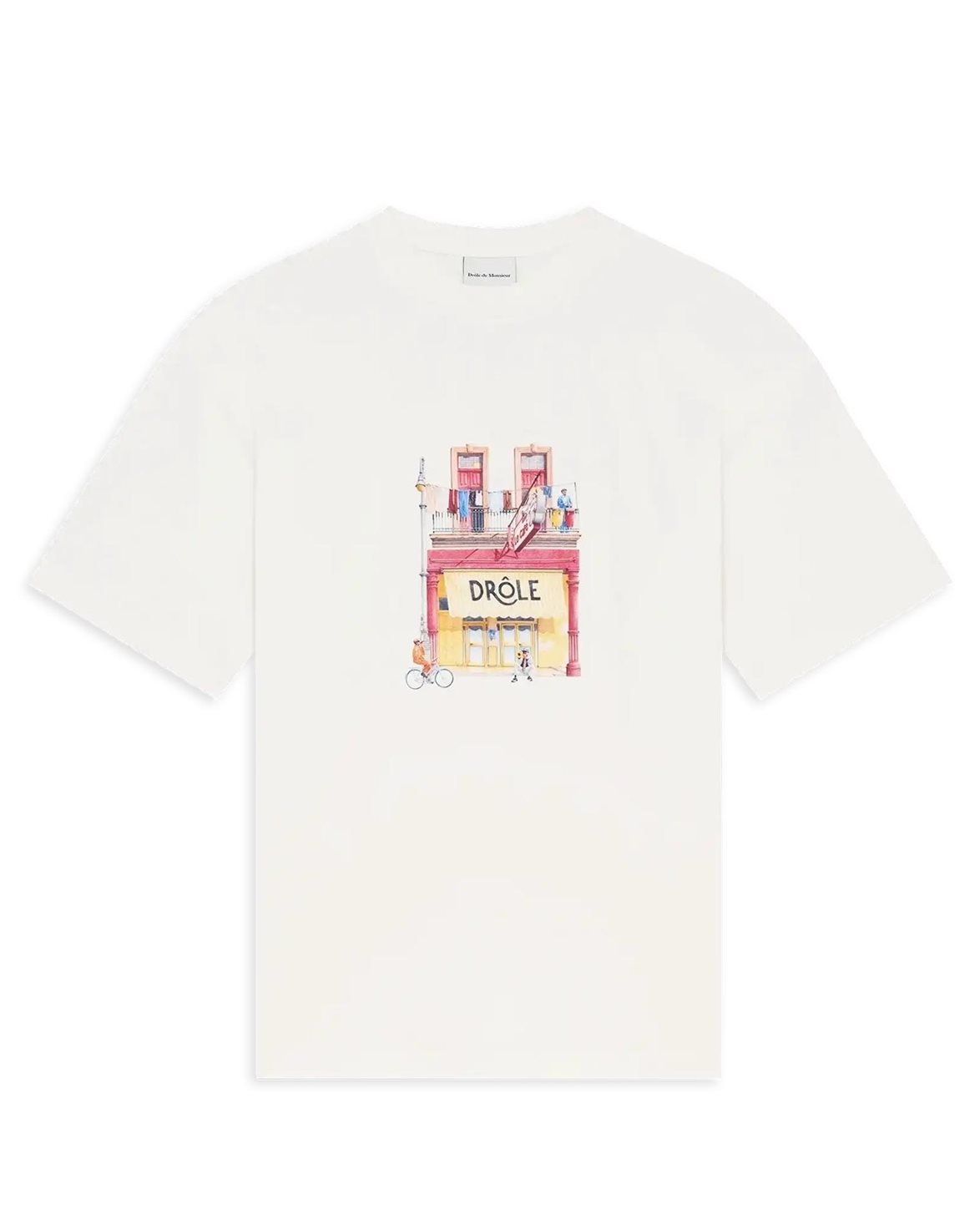 T-shirt från Drôle De Monsieur. Drôle Café T-Shirt är är tillverkad av 100% bomull och är designad med en normal rak passform. T-shirten är försedd med en ribbad, rund halsrigning och droppade axlar.