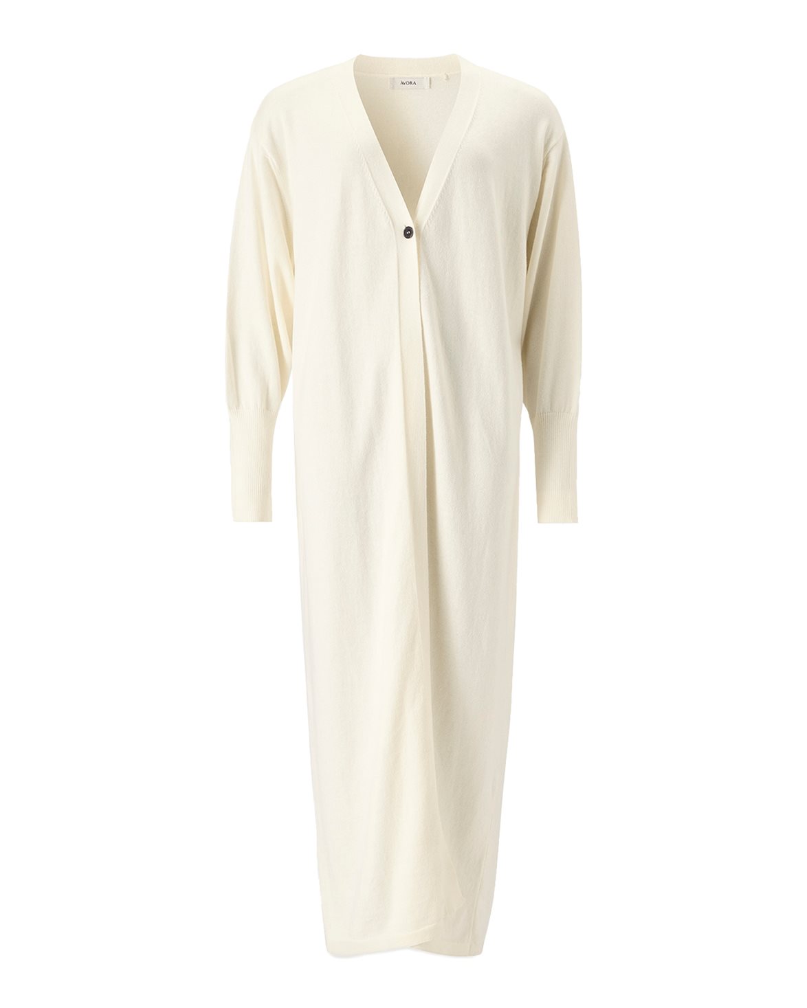 Lång cardigan från Àvora. Cashmere Blend Long Cardigan är tillverkad av en mjuk kashmir- och bomullsblandning och har en avslappnad passform med ribbade ärmslut. Koftan är försedd med v-ringad hals och en förslutande knapp.