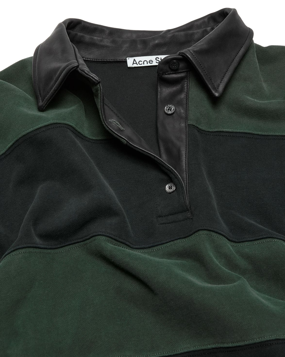 Tröja från Acne Studios. Leather Collar Rugby Polo Shirt är tillverkad av 100% bomull och är försedd med en krage tillverkad av läder. Tröjan har en avslappnad passform med indragen nederkant.