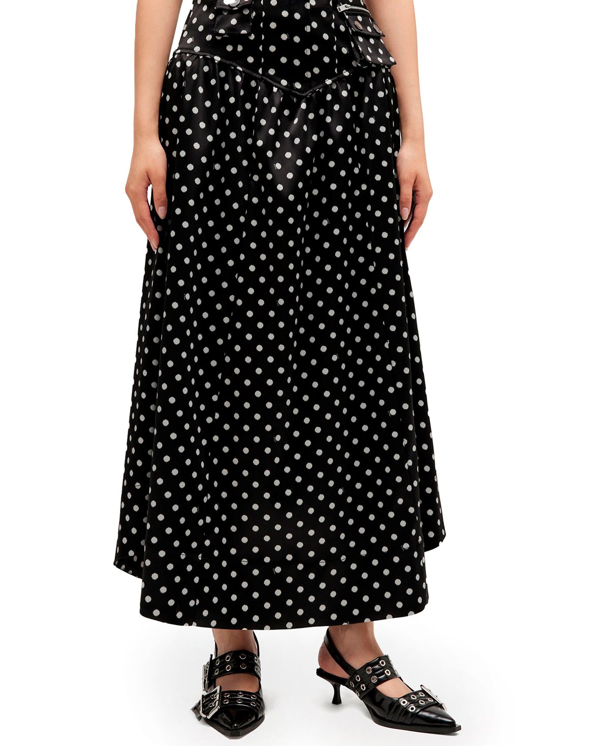 Kjol från Ganni. Printed Double Satin Long Pocket Skirt är tillverkad av polyester och har en avslappnad passform. Kjolen är försedd med korsettliknande midjeband, dragkedja och fickor.