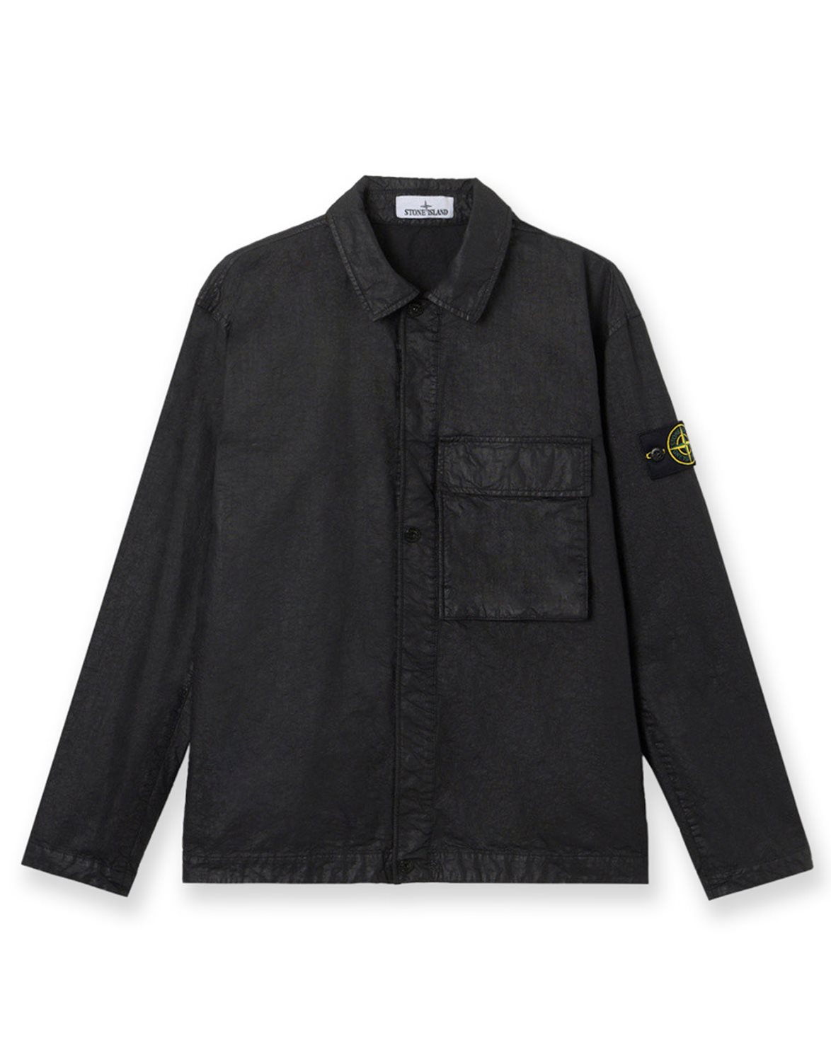 Overshirt från Stone Island. 1200003 Buttoned Nylon Overshirt är tillverkad i 100% nylon från Japan i en kalendrerad Panama-väv som kombinerar låg vikt med hög slitstyrka. Plagget är garment dyed för en levande, marmorerad effekt och har en bröstficka med lock och dold tryckknäppning, Stone Island badge på vänster ärm, justerbara manschetter med tryckknapp samt en semidold knäppning framtill.