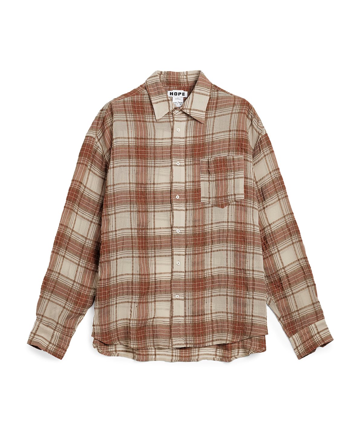 Skjorta från Hope. Room Shirt är tillverkad av en linne- och bomullsmix och är designad med en avslappnad, boxig passform med något sänkta axlar. Skjortan är försedd med en bröstficka, pärlemor knappar och justerbara manschetter.