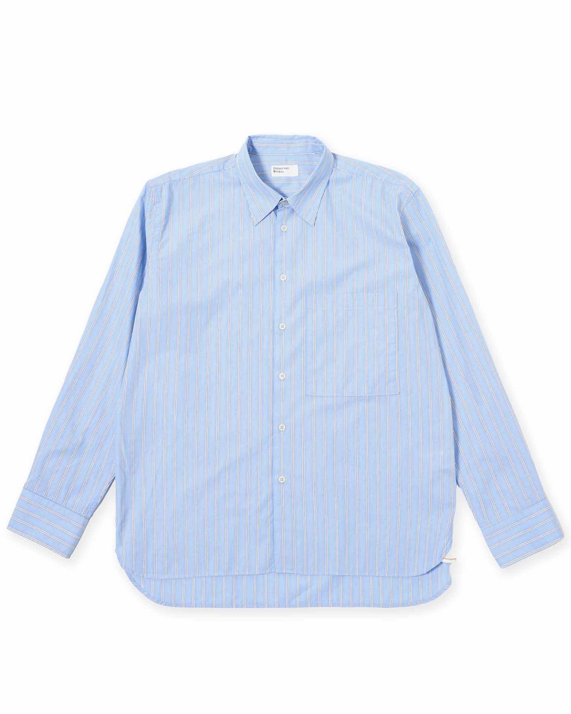 Skjorta från Universal Works. Square Pocket Shirt är en skjorta med ledig passform, en oversized fyrkantig bröstficka och justerbara knappmanschetter. Modellen har rundad nederkant och är tillverkad i en klassisk poplinväv med ett subtilt randmönster i mjuk blå nyans.