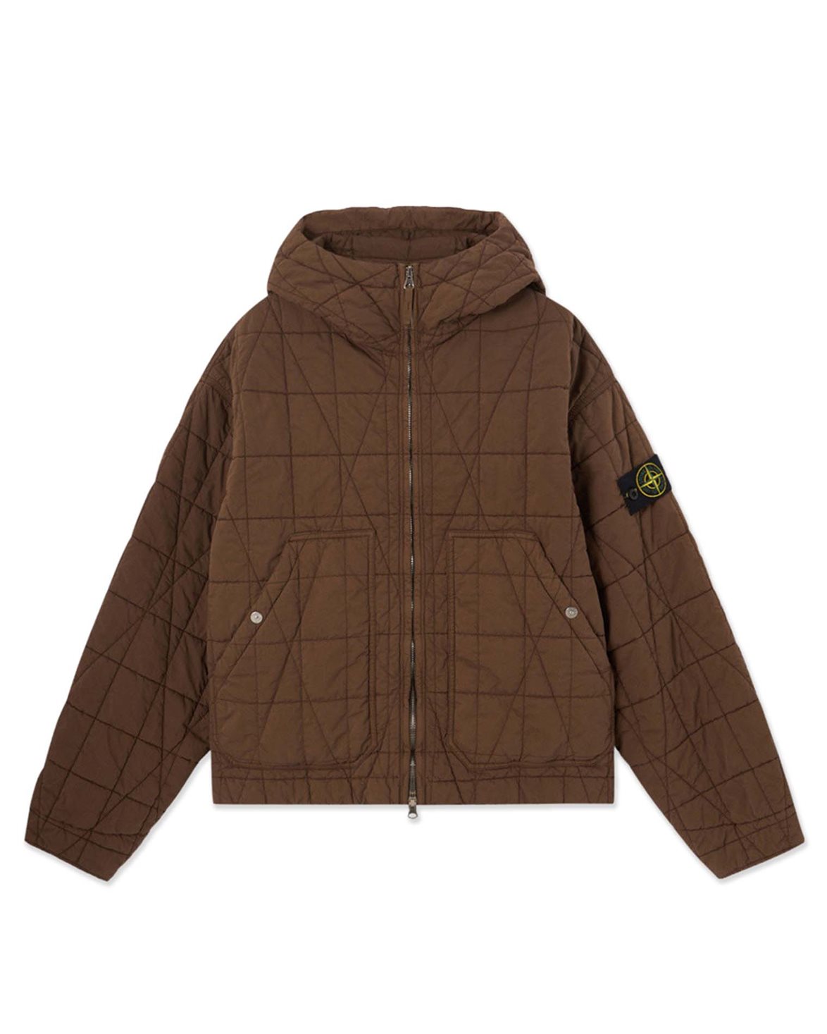 Huvjacka från Stone Island. 4100014 Quilted Cotton Nylon Jacket är tillverkad av mikroruggad, matt bomulls-nyloncanvas med resinbelagd baksida för vatten- och vindmotstånd. Jackan är försedd med vadderad huva, snedställda fickor, justerbara ärmslut och dold tvåvägsdragkedja.