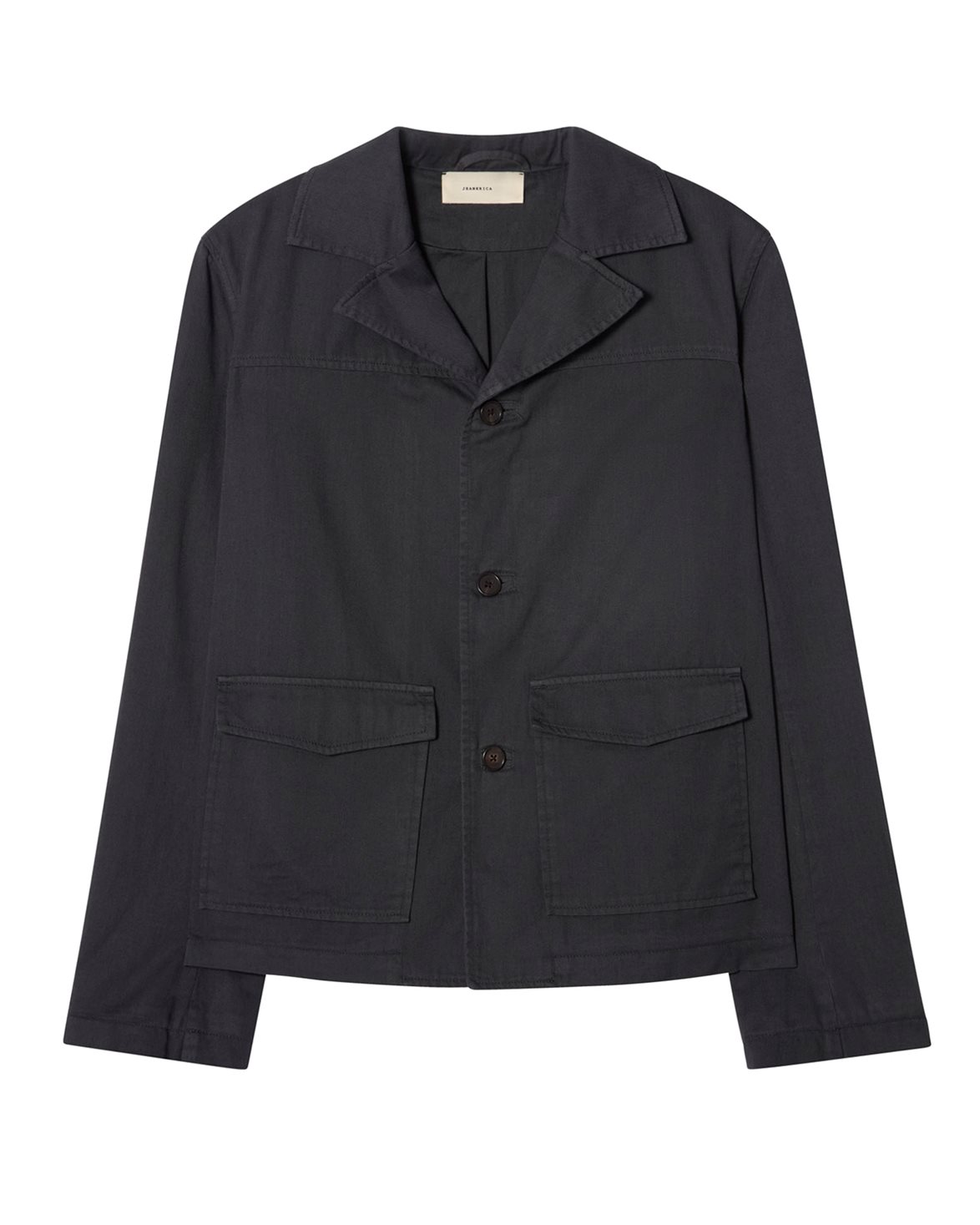 Jacka från Jeanerica. Chet Jacket är tillverkad av 100% bomull och har en klassisk design med en boxig siluette. Jackan är försedd med två stora sidofickor, krage och förslutande knappar.