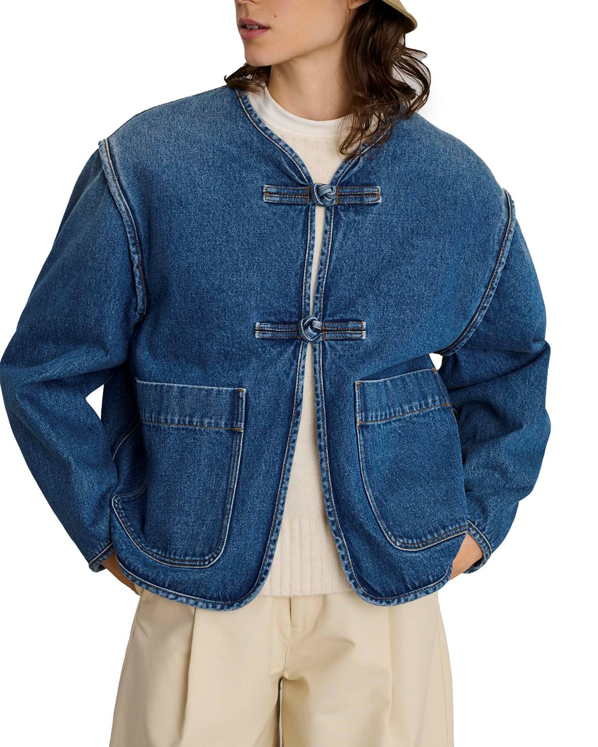 Jeansjacka från Soeur. Agatha Jacket är tillverkad av 100% bomull och är designad med en avslappnad passform med något rundad fåll. Jackan är försedd med stora framfickor och förslutande snören framtill.