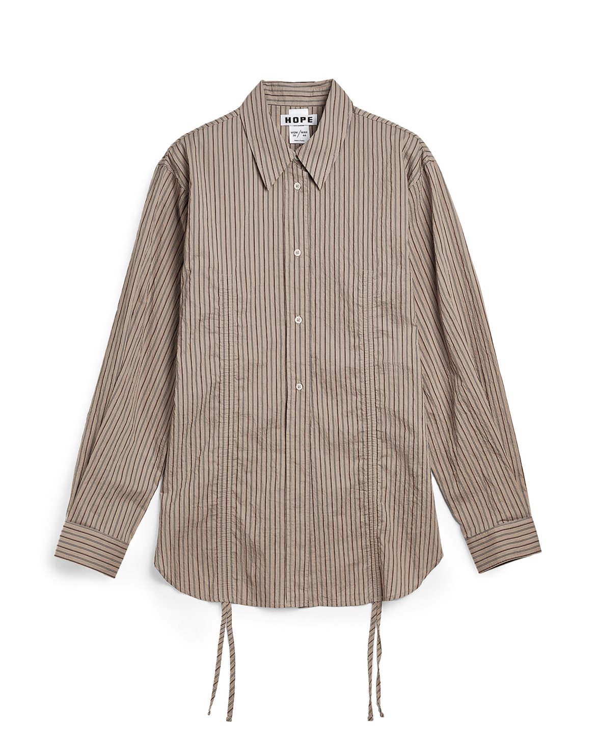 Skjorta från HOPE. String Shirt är designad i en avslappnad passform och har en dragsko-detalj framtill som skapar subtila veck när den dras åt. Skjortan är tillverkad i bomullspoplin med en lätt ojämn textur som ger ett elegant och livfullt uttryck.