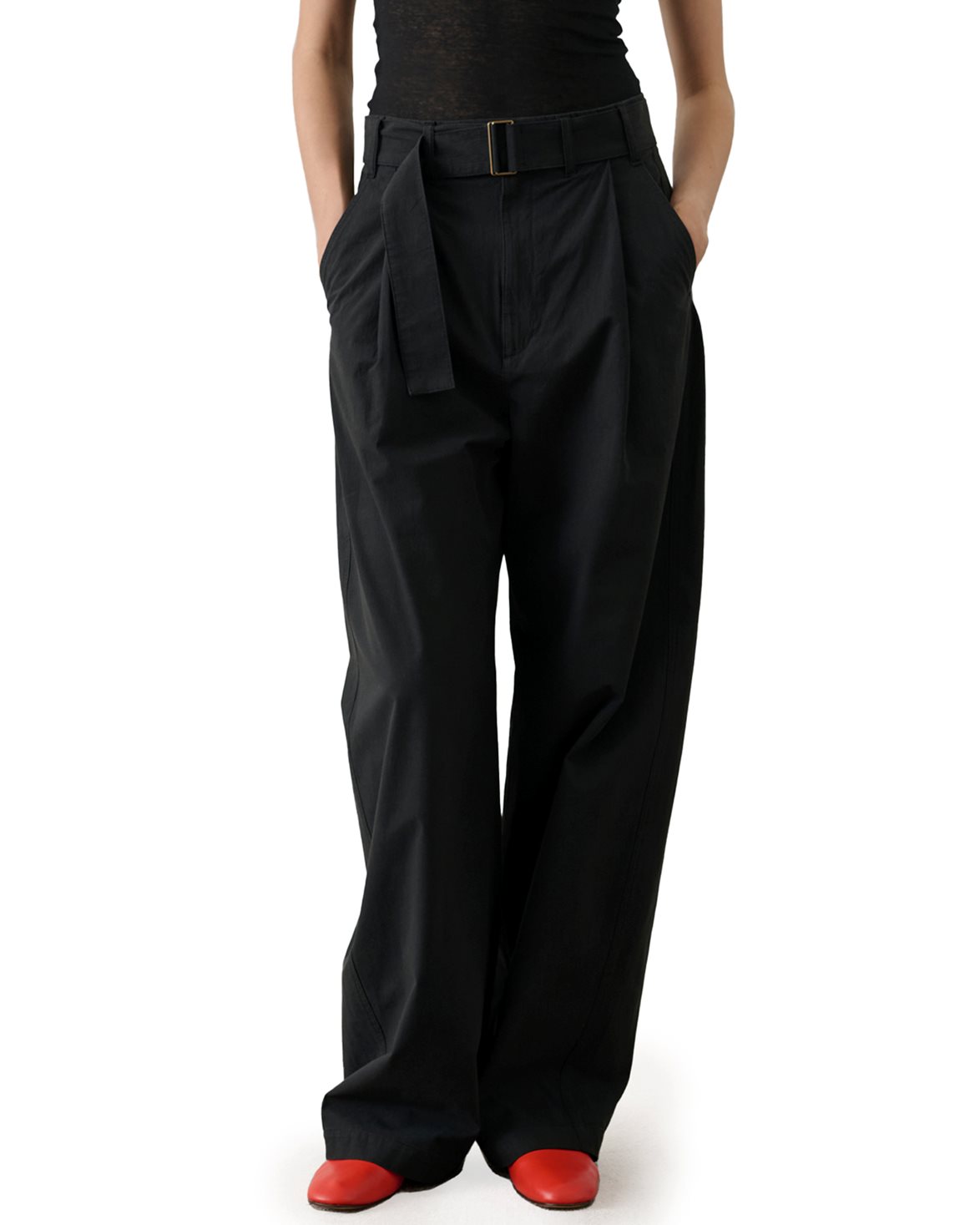 Byxa från Soeur. Gaby Pants är tillverkade av 100% bomull och har en hög midja med lös passform och hellång siluett. Byxan är designad i lätt bomullspoplin och är försedd med avtagbart skärp i samma material med spänne.