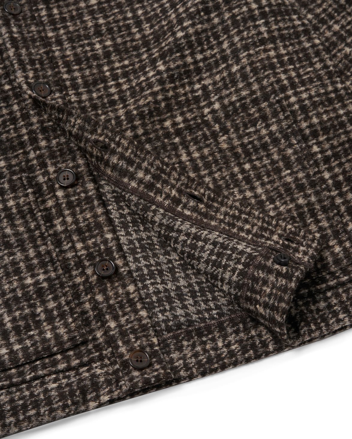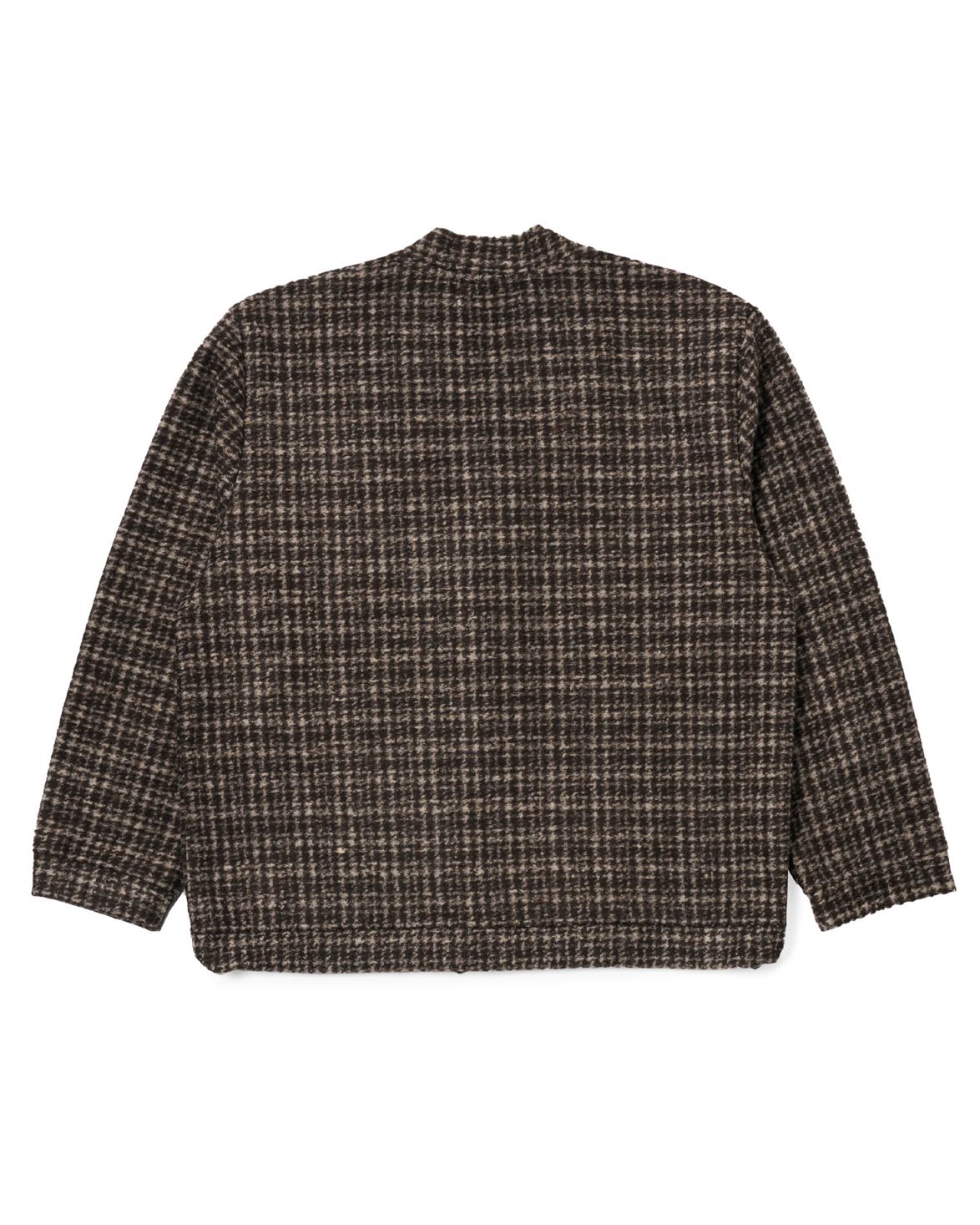Cardigan från Universal Works. Advance Cardigan är tillverkad av en varm ullblandning och har en boxig, lös passform. Modellen har fåll och muddar i samma tyg samt en elastisk nederkant. Cardiganen är försedd med två stora framfickor och förslutande knappar framtill.