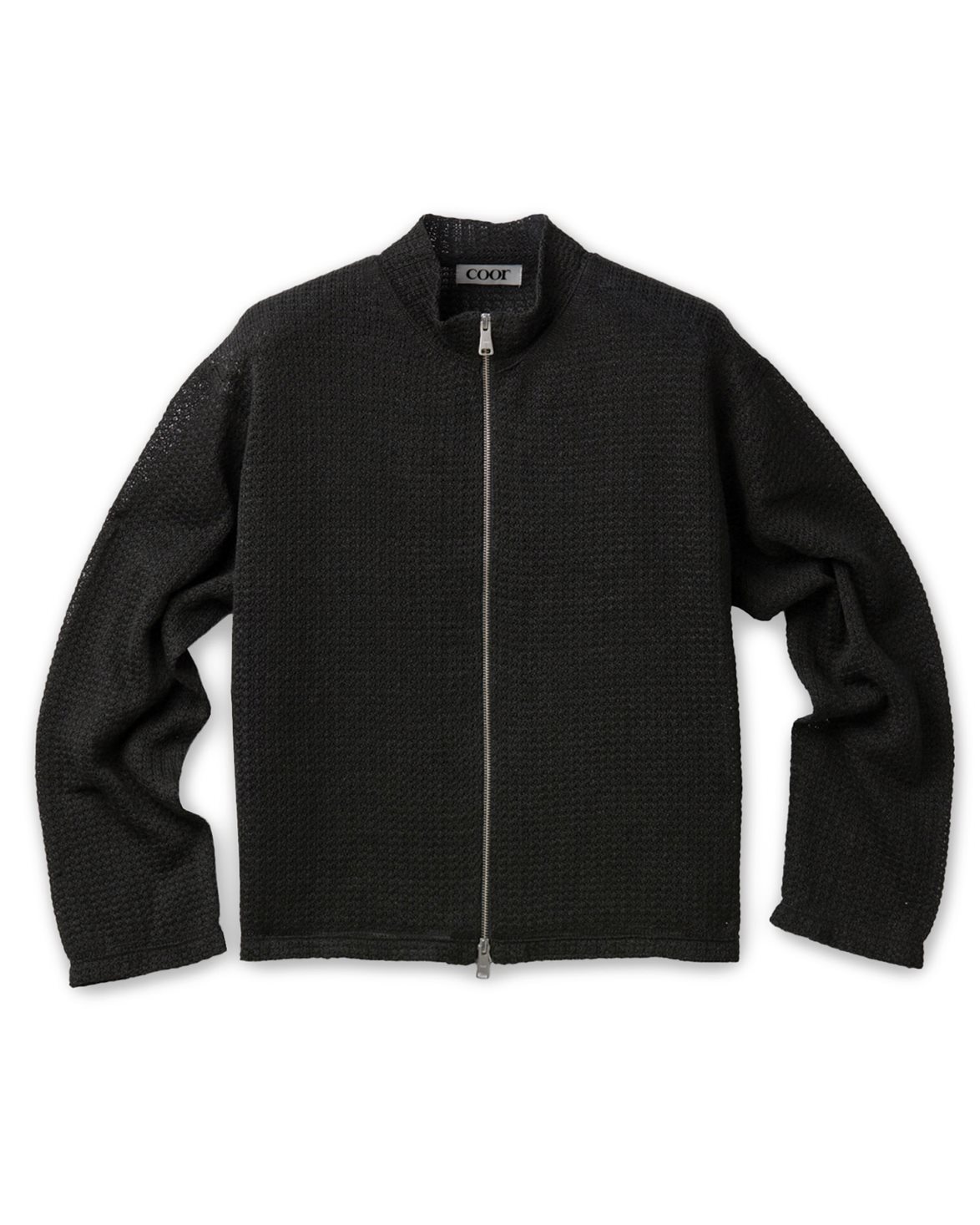 Tröja från COOR. Linen Knit Zip-Up är tillverkad i en linneblandning och har en avslappnad passform. Tröjan är försedd med ståkrage, tvåvägsdragkedja framtill samt dekorativ hålstickning.