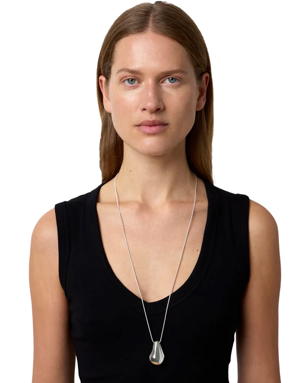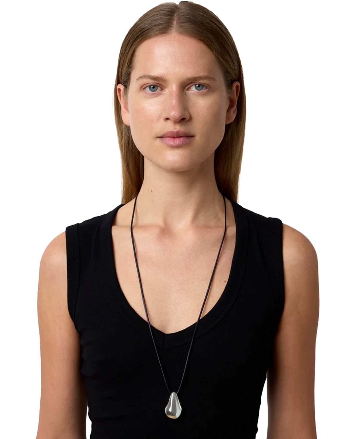 Halsband från Lié Studio. The Betty Necklace är tillverkat av 925 silver och har ett droppformat, skulpturalt hänge. Halsbandet levereras med både en tunn silverkedja och ett elegant läderband för mångsidig styling.