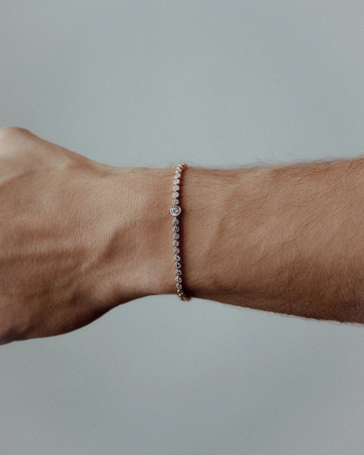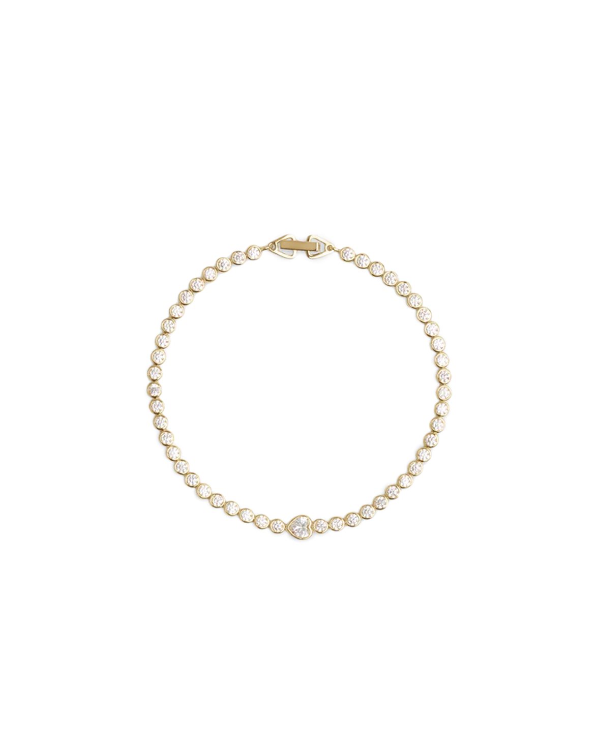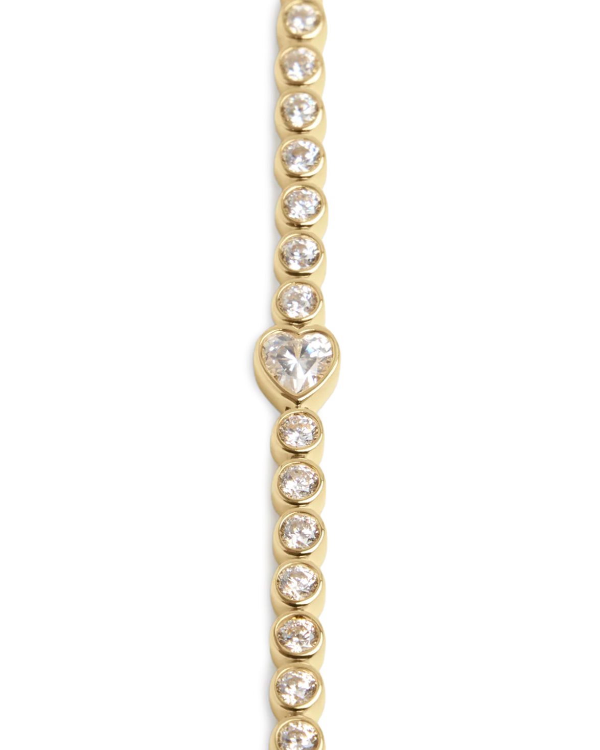 Tennisarmband från RAGBAG. Ophelia Bracelet är handtillverkat i 925 sterling silver med 2 mikron 18k guldplätering. Armbandet är designat med vita cubic zirconia-stenar i olika storlekar, inklusive en hjärtformad cubic zirconia-sten.