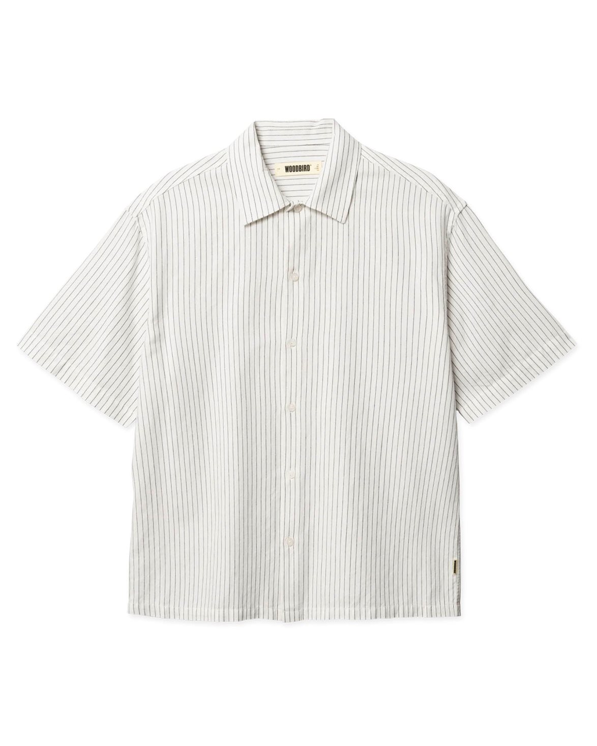 Kortärmad skjorta från Woodbird. Wang Tai Stripe Shirt är tillverkad av en linneblandning och har en avslappnad passform med något droppade axlar. Skjortan är försedd med klassisk skjortkrage och förslutande knappar.