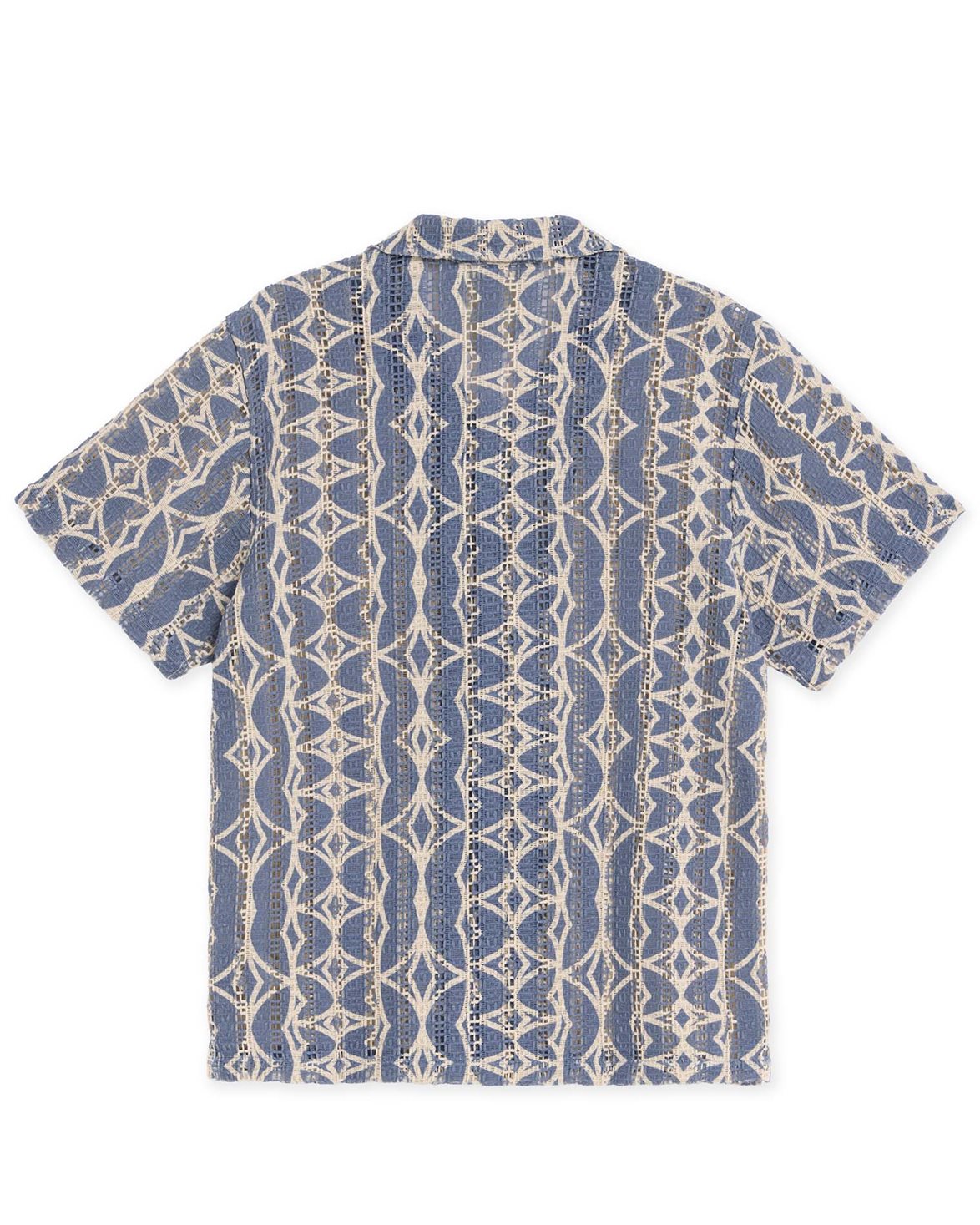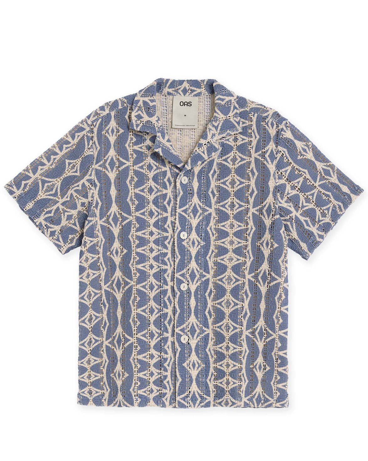 Skjorta från OAS. Arko Cuba Shirt är en kortärmad skjorta tillverkad i bomull med en stickad jaquardstruktur som ger en luftig och texturerad känsla. Modellen har resortkrage, knäppning framtill och en avslappnad passform med rak silhuett.
