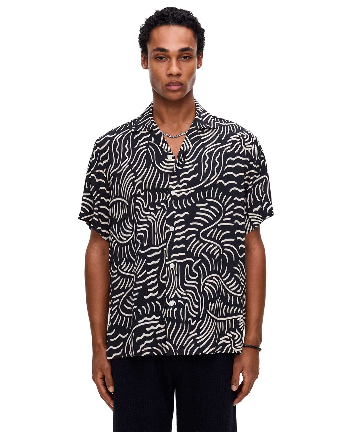 Skjorta från OAS. Tar Lorenzo Viscose Shirt är en kortärmad skjorta i 100% viskos med lätt och luftig kvalitet samt silkeslen känsla. Modellen har resortkrage, knappslå framtill och en avslappnad passform med lätt nedhasade axlar som ger ledig silhuett.