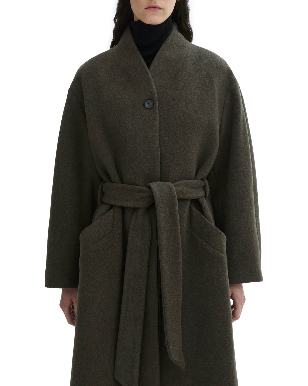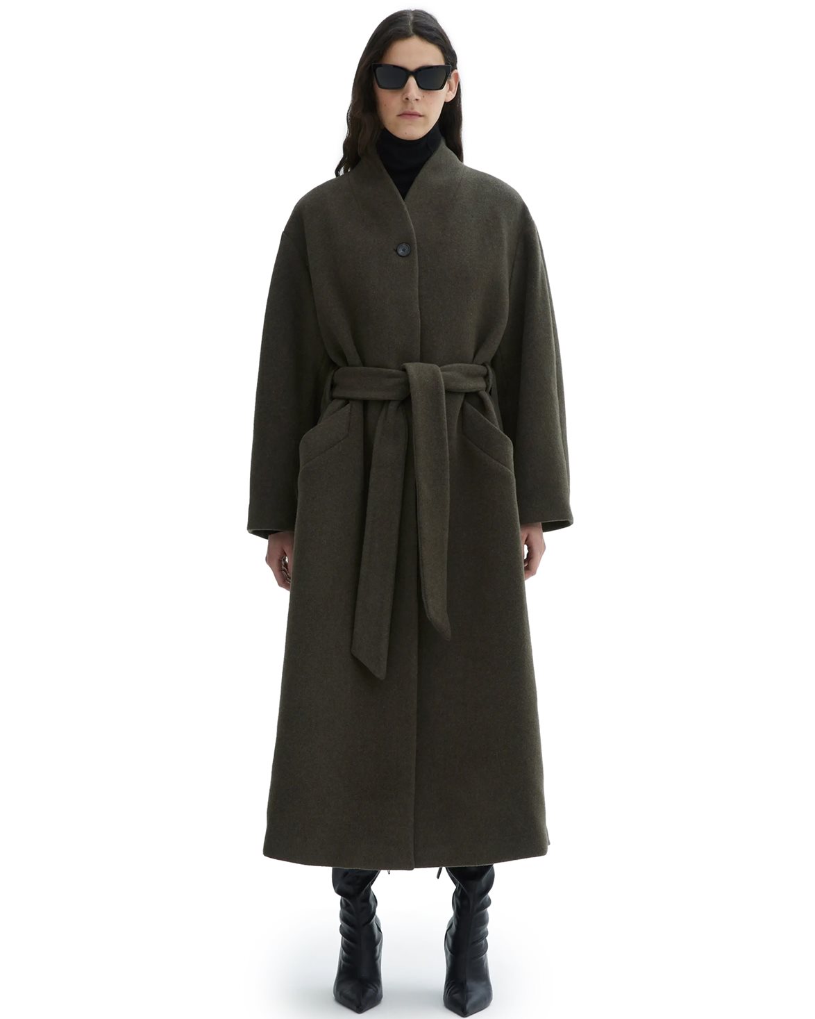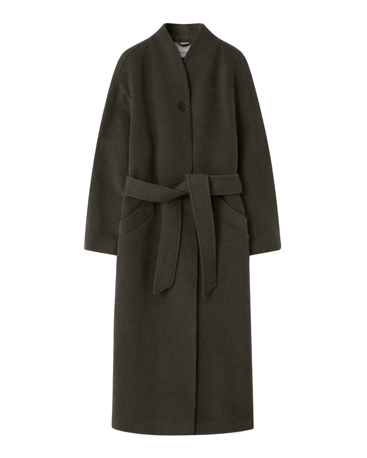 Kappa från House of Dagmar. Oversize Belted Coat är tillverkad av en mjuk ullblandning och är designad med en oversized passform och droppade axlar. Kappan är försedd med sneda sidofickor, en förslutande knapp och ett bälte i midjan.