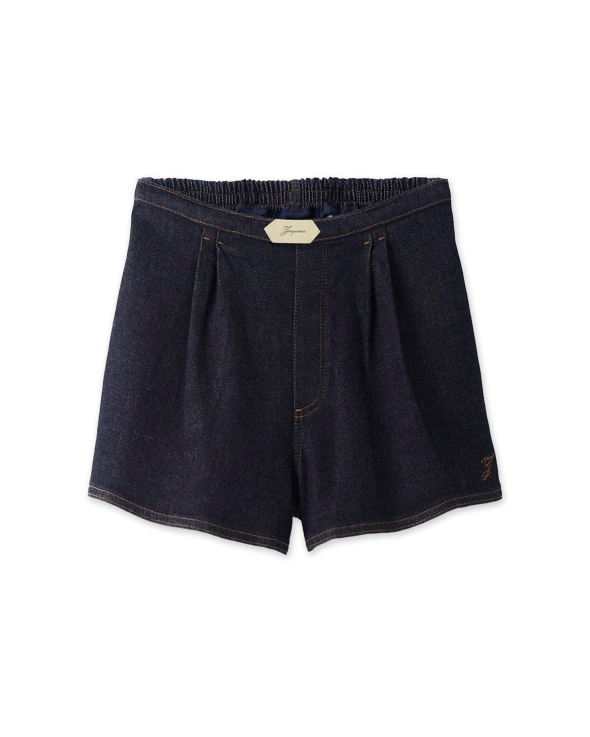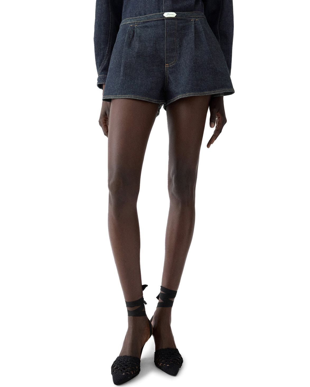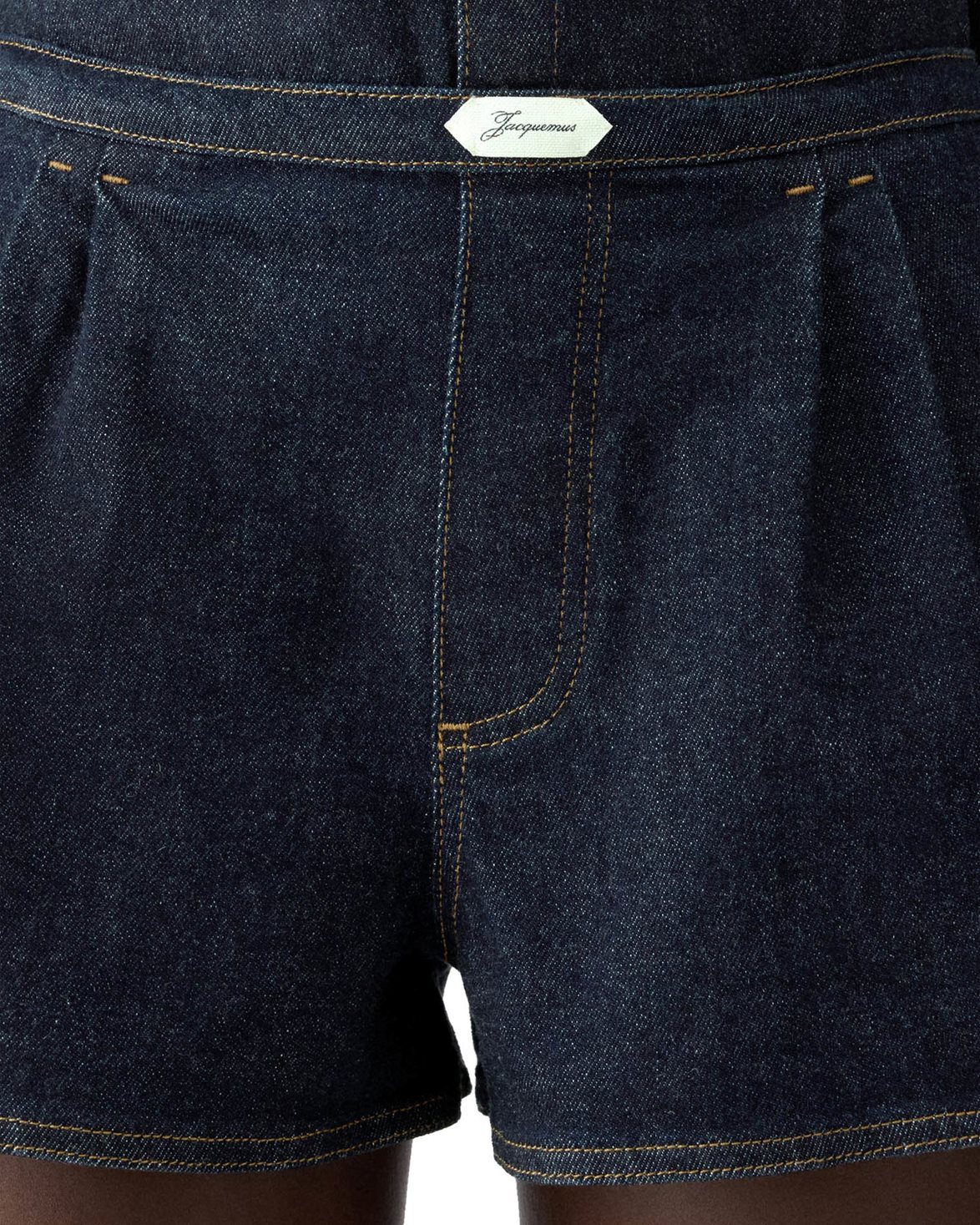 Jeansshorts från JACQUEMUS. Le Short De-Nîmes Amelo Denim Shorts är tillverkade i Italien av stretchig indigo-denim och har sydda veck som ger shortsen en lätt voluminös passform. Shortsen är försedda med elastisk midja, ett broderat “J” på benet samt en broderad patch med varumärkets logotyp på framre midjan.