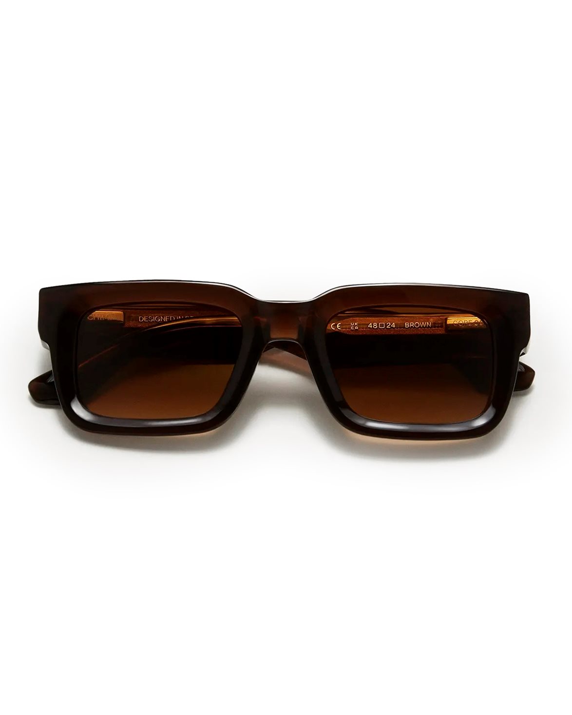 Solglasögon från CHIMI. 05 har en moderna design med en rektangulär silhuett som framhävs av en skulpterad båge. Solglasögonen är utrustade med UV-skyddande CR39-linser och är tillverkade av italienskt premium Acetate Renew™ som förstärks med en metallkärna.