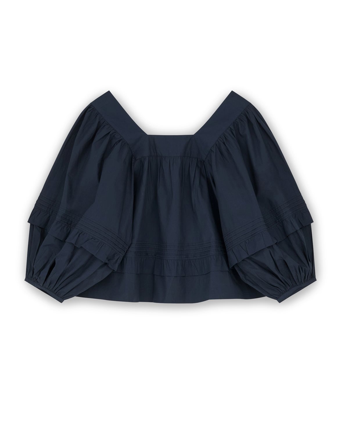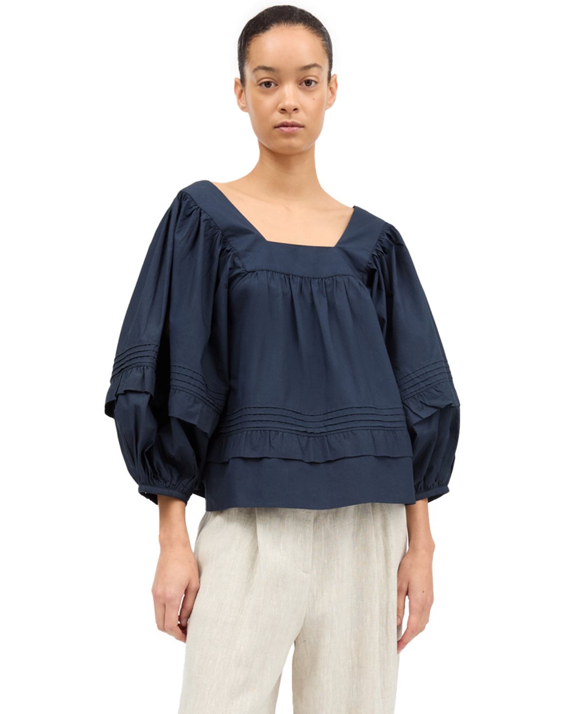 Blus från Skall Studio. Alice Blouse är tillverkad av 100% ekologisk bomull (GOTS-certifierad) och har en avslappnad passform. Blusen är designad med volangdetaljer och ballongformade ärmar.