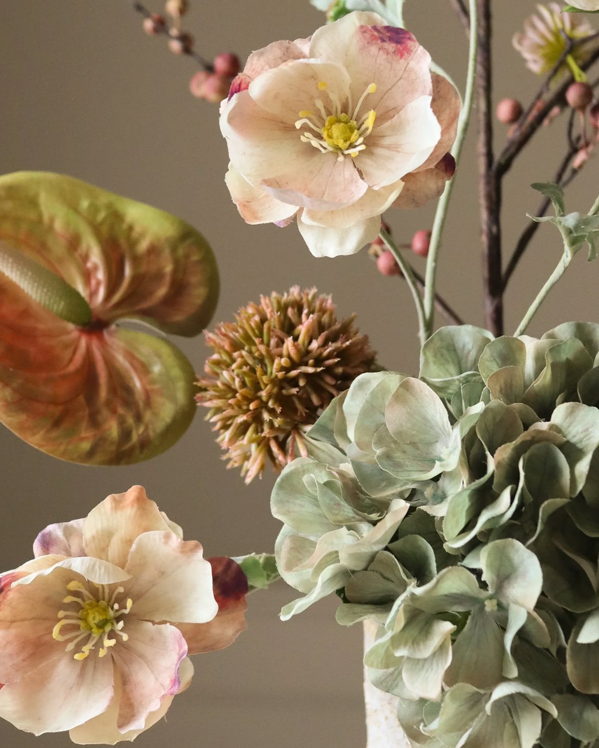Konstgjord bukett från Botané. Blush Grove Bouquet är tillverkad av skum, silke, latex och plast. Buketten är försedd med 6 stjälkar.
