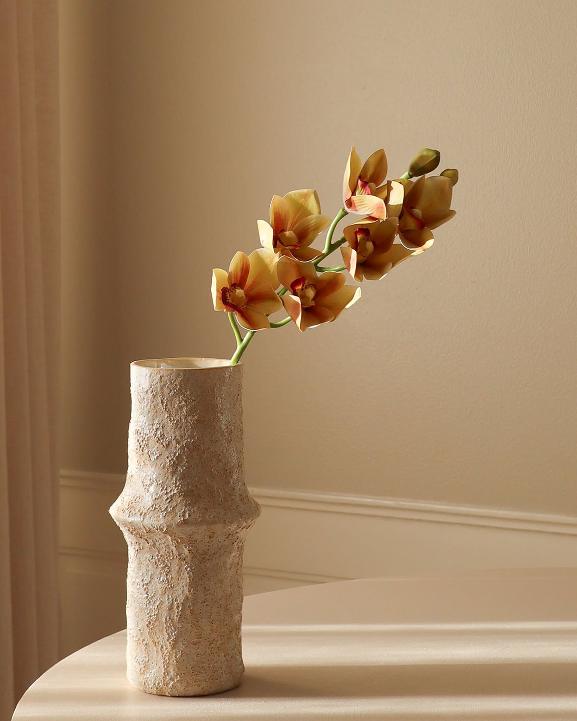 Konstgjord snittblomma från Botané. Cymbidium Orchid Flower är tillverkad av skum, silke, latex och plast.